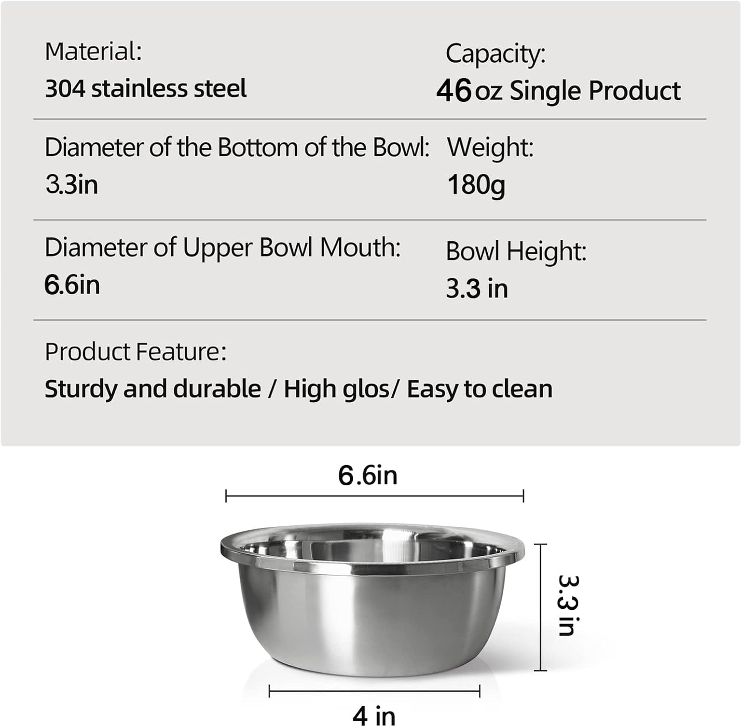 • STABLE AND SMOOTH: The pet food bowl is mirror polished for an elegant look and smooth touch. The flat edges won't hurt your dog's tongue, rust-resistant and easy to clean.