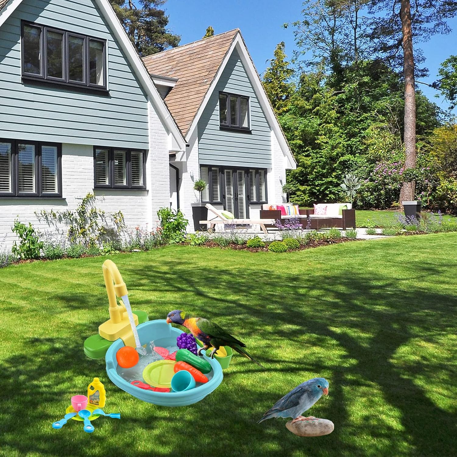 • 【 Pets and Children's Toys 】: The bird bath bathtub adopts an automatic faucet design and requires the installation of 2 AA batteries (not included), making it very easy to assemble and convenient to use. The sink can store various toys and small items, whether it's for children to play or for parrots/birds to take a bath.