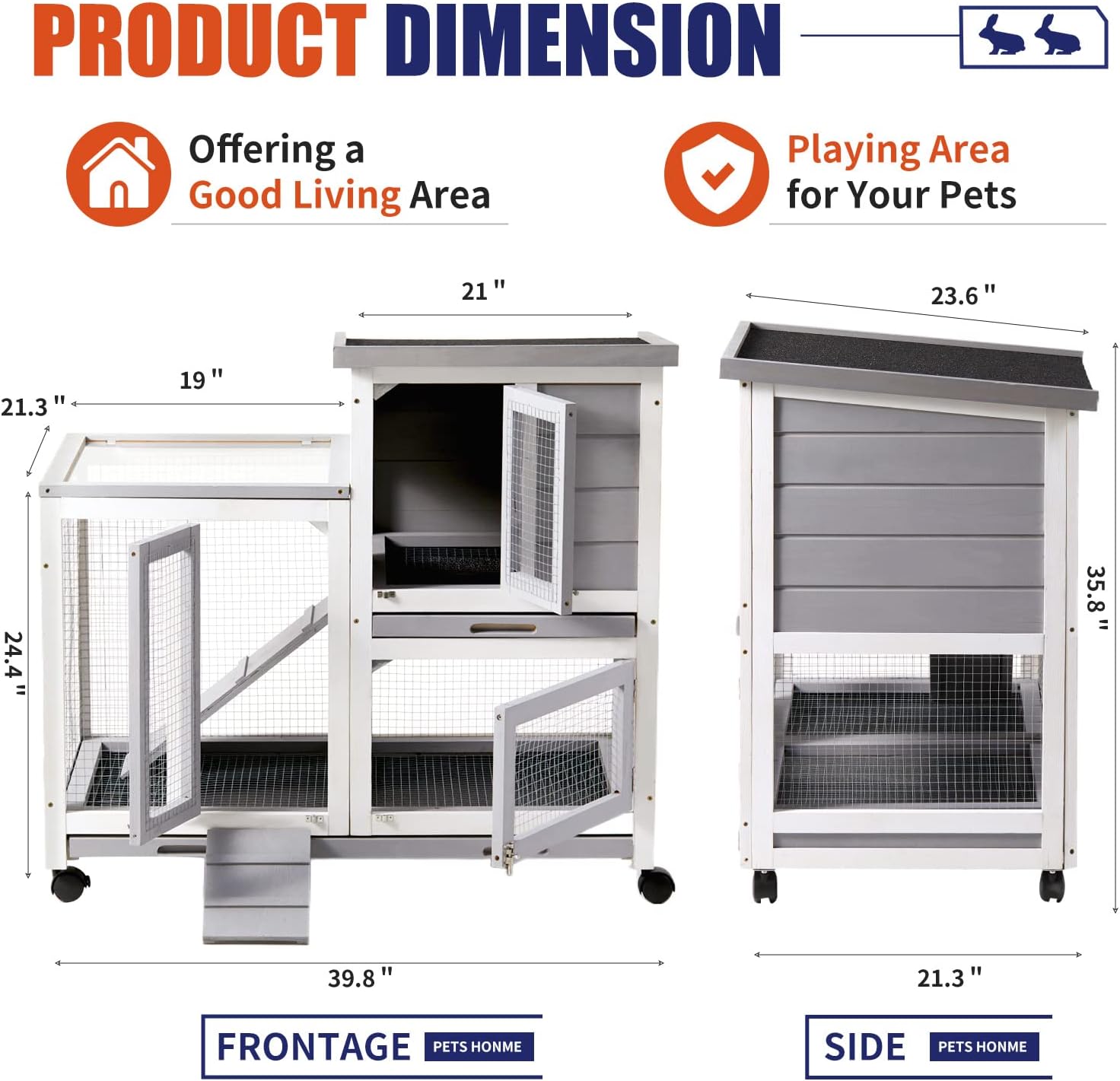 • EASY TO ASSEMBLE -- The rabbit cage has 4 wheels that make it easy to move from indoors to outdoors. Two of them are locking wheels, which can be well fixed and safe. Assembly is very simple and straightforward with detailed illustrations.