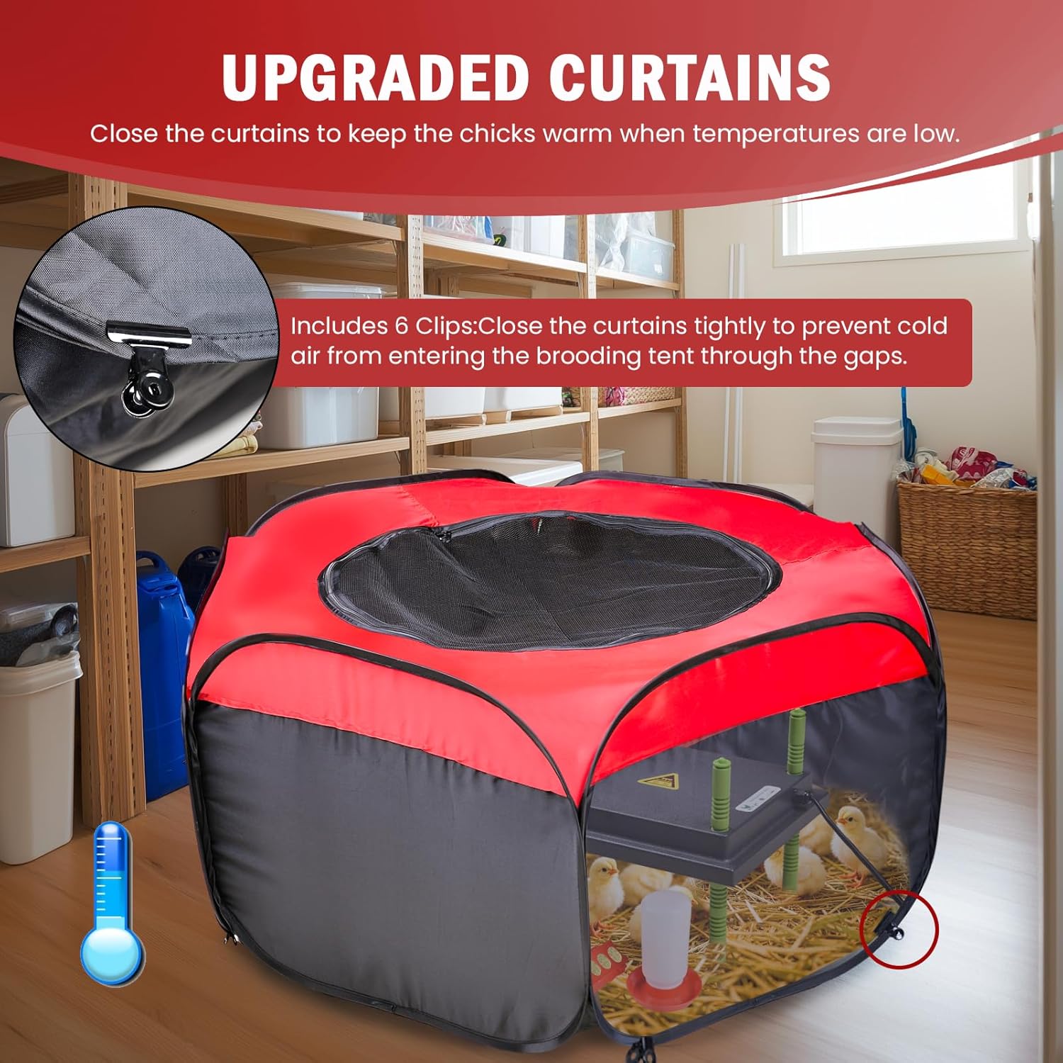 • INDOOR & OUTDOOR USE - Perfect for indoor or outdoor settings, this baby chick brooder features an advanced double-door design, three-sided mesh design, and escape-proof mesh. The warm curtains is perfect for outdoor, providing excellent cold protection. Indoors you can open the breathable mesh panels, which offer good ventilation to ensure a cool and comfortable environment. while also preventing the chicks from escaping. This playpen will keep your chicks safe, happy, and comfortable.