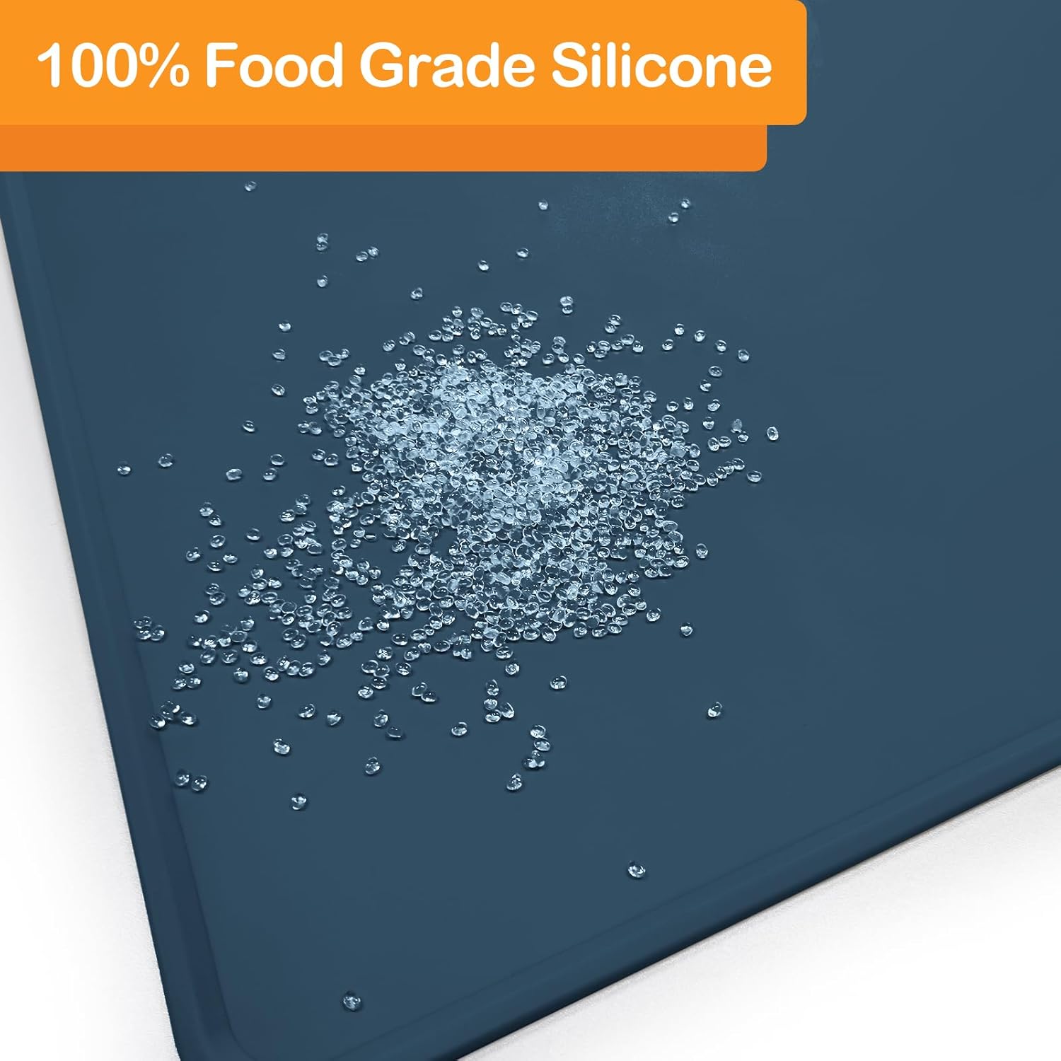 KVK Dog Water Mat 39.4 by 29.5in Extra Large - Silicone Mat for Dog Bowls Waterproof Non Slip - XL Pet Mat for Food and Water Protect Floors - Stone Blue