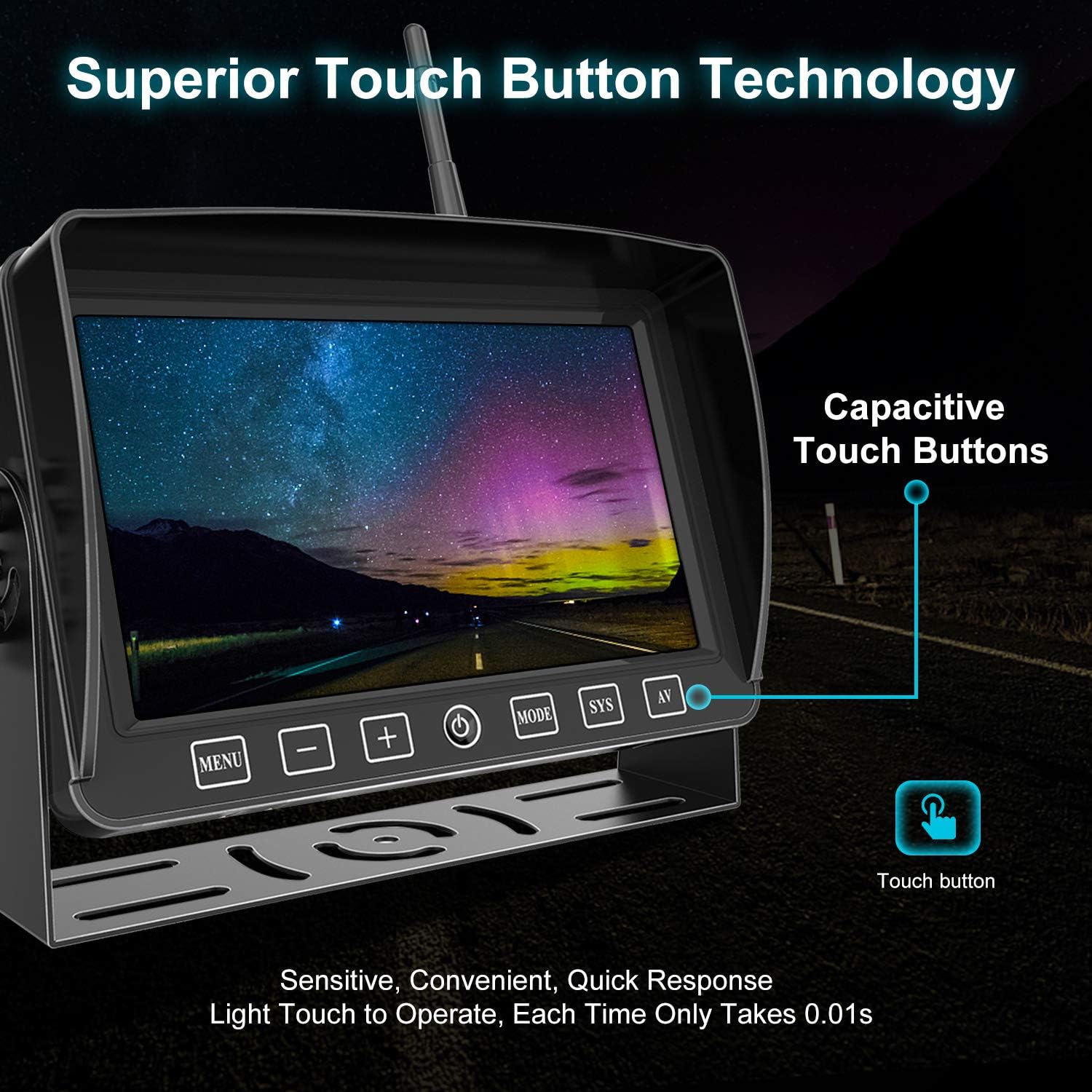 - โ Advanced Capacitive Touch Buttons & Digital Signal: Touch buttons are more sensitive and convenient than traditional buttons. Gently touch-operated, its quick response makes it safer for you to use while driving. The wireless digital signal transmission reaches up to 108 feet in the open area, giving you a steady and real-time picture that stays steady and lag-free even when the car is traveling at speeds up to 95 MPH.