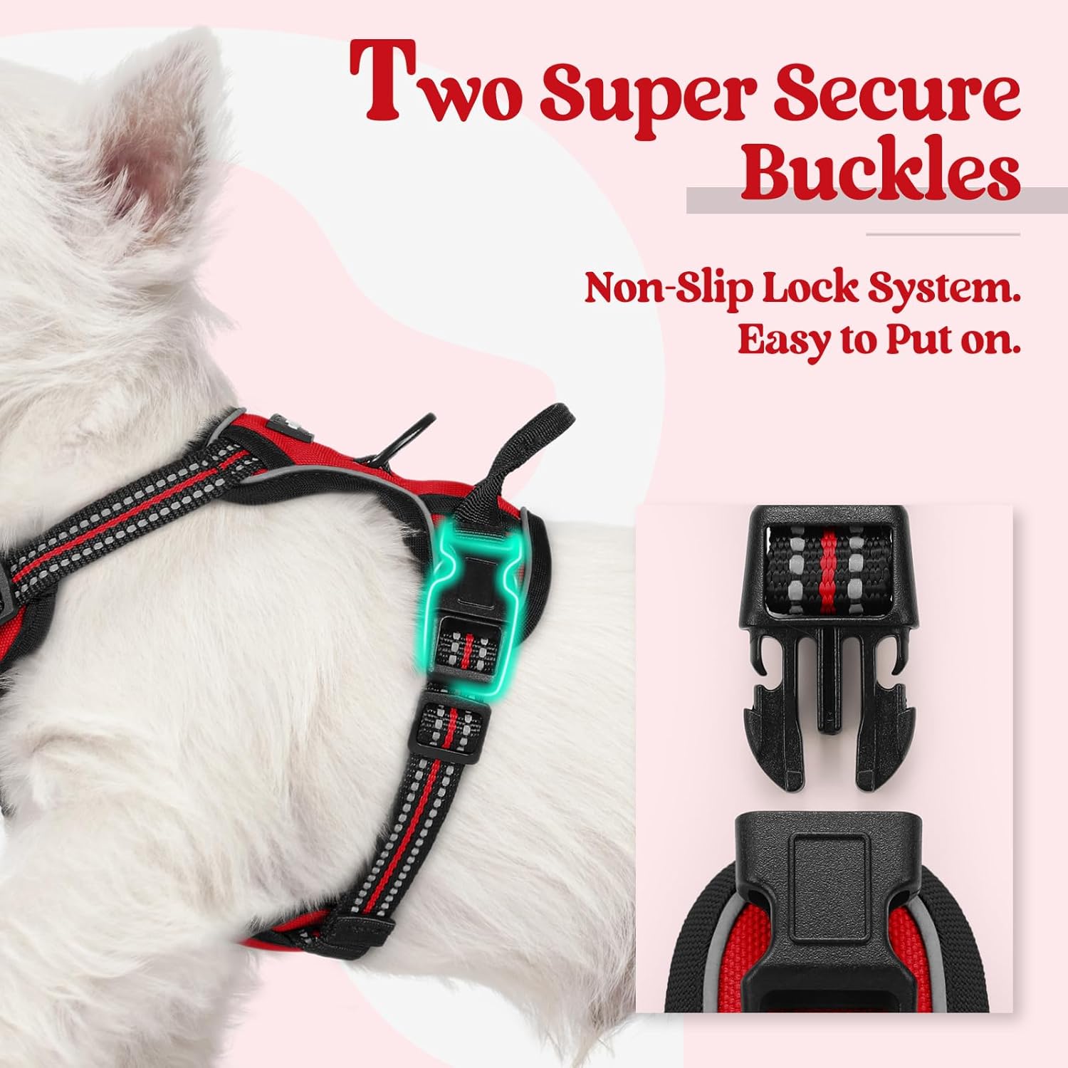 • No Pull, No Choke - Our non-pulling dog harness is specially designed with 2 metal leash rings for safer dog walks. Use the chest attachment clip to stop your dog from pulling on walks, perfect for dog training or dogs who tend to pull. The back one is great for casual walks, jogging, hiking, etc