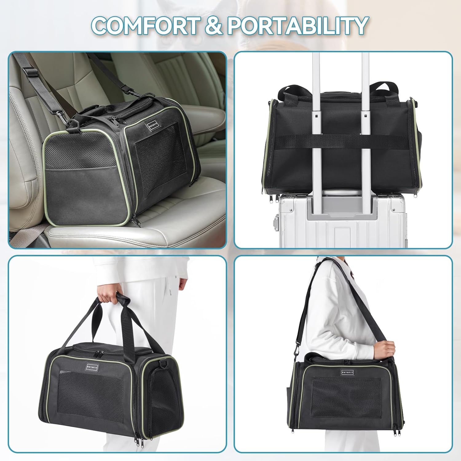 PETSFIT Pet Carrier Airline Approved with Extendable Mat, Dog Carriers for Small Dogs, TSA Approved Pet Carrier, Puppy Carrier for Small and Medium Cats Under 12 Lbs, Black