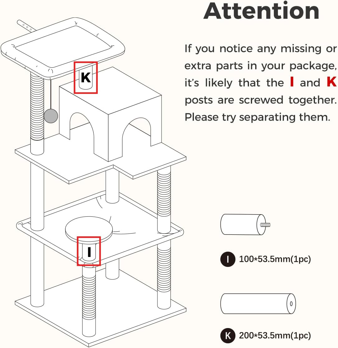 • Easy to Assemble: This cat tree is equipped with all the hardware and tools. The installation process is straightforward and hassle-free. You can easily follow the instructions provided in the product's manual for installation. If you have any questions or concerns, our customer service team is readily available to assist you.