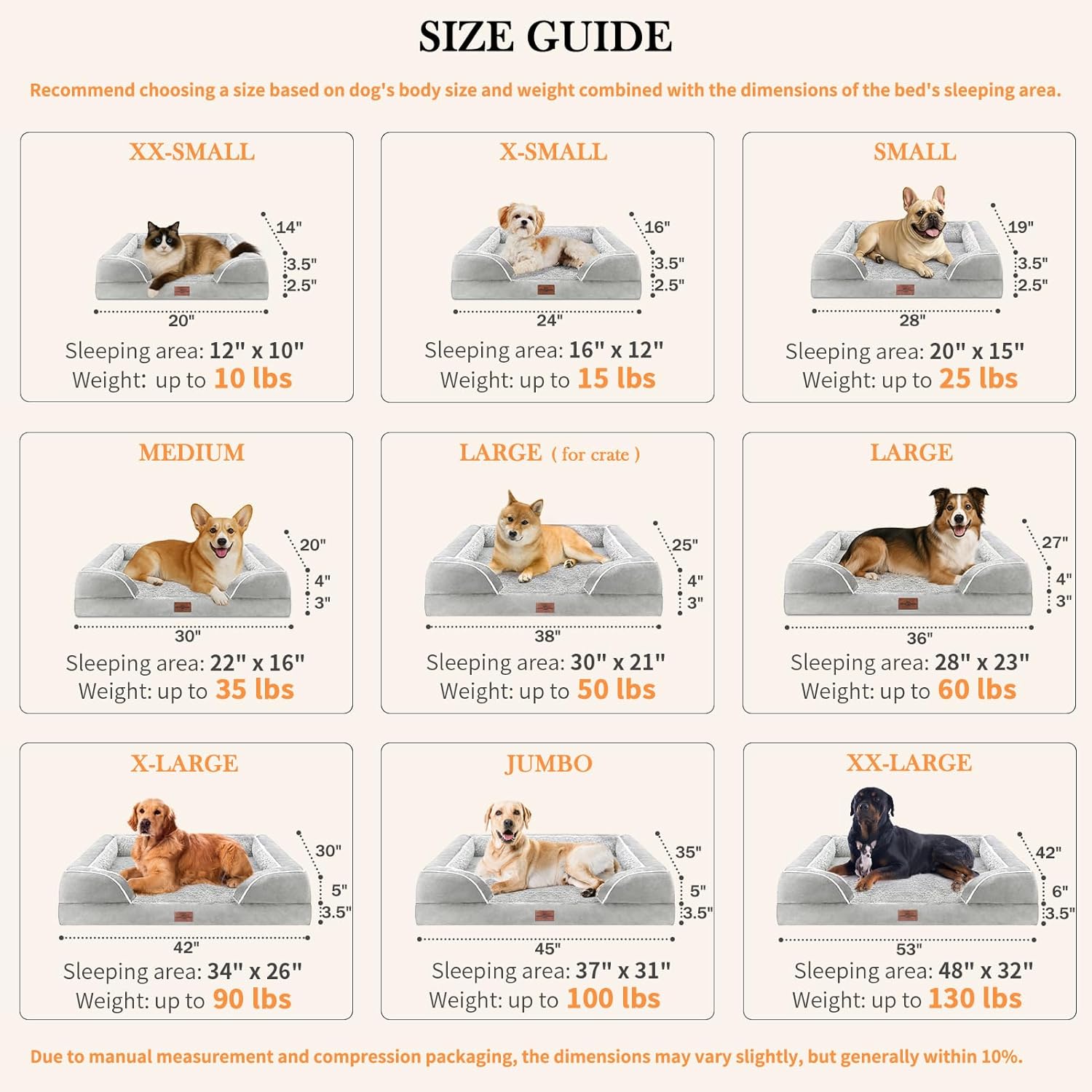 Comfort Expression XXL Orthopedic Foam Dog Bed for Extra Large Dogs, Waterproof Orthopedic Dog Beds, Washable Dogs Sofa Beds with Removable Cover & Non-Slip Bottom(XX-Large,Grey White)