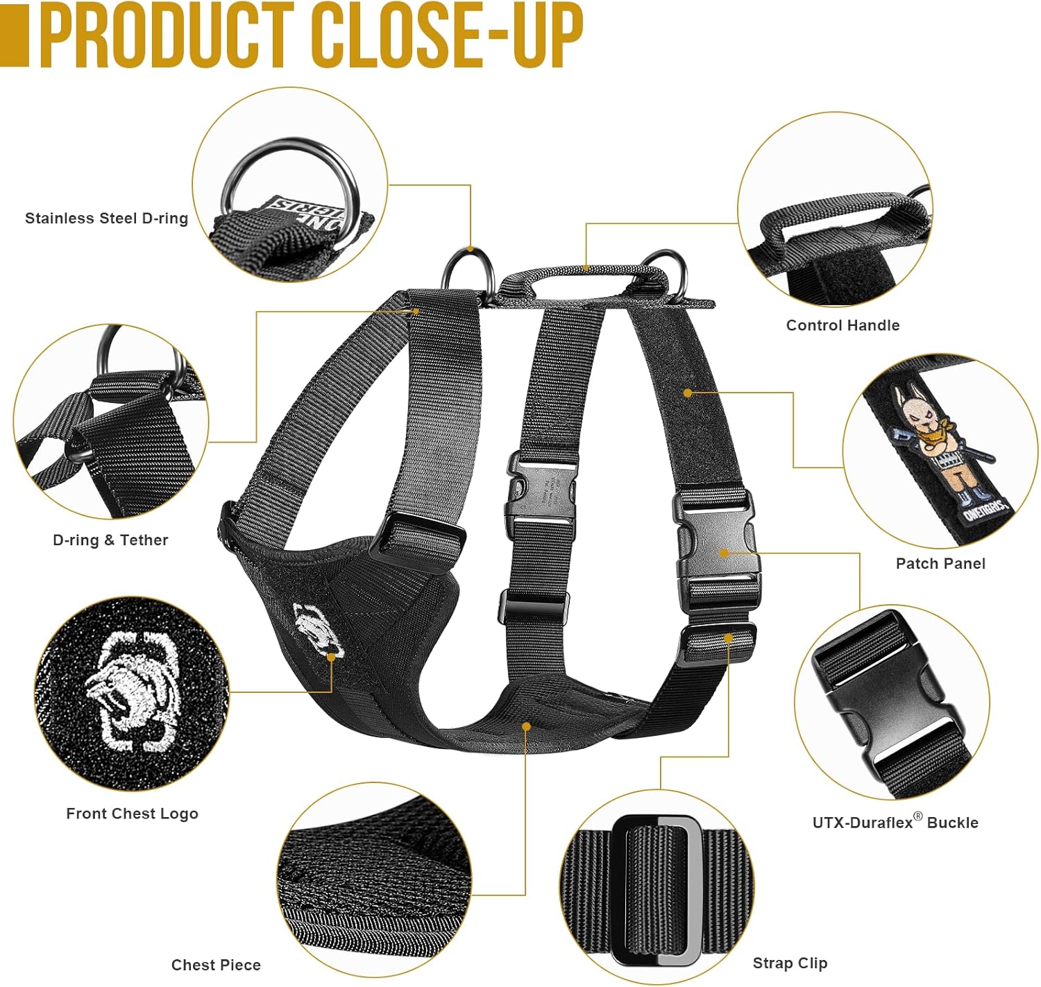• EFFECTIVE CONTROL - 2 Stainless steel D-rings and a padded traffic control handle to keep your pup safe and maneuver him/her away from trouble during daily walks, hikes and adventures