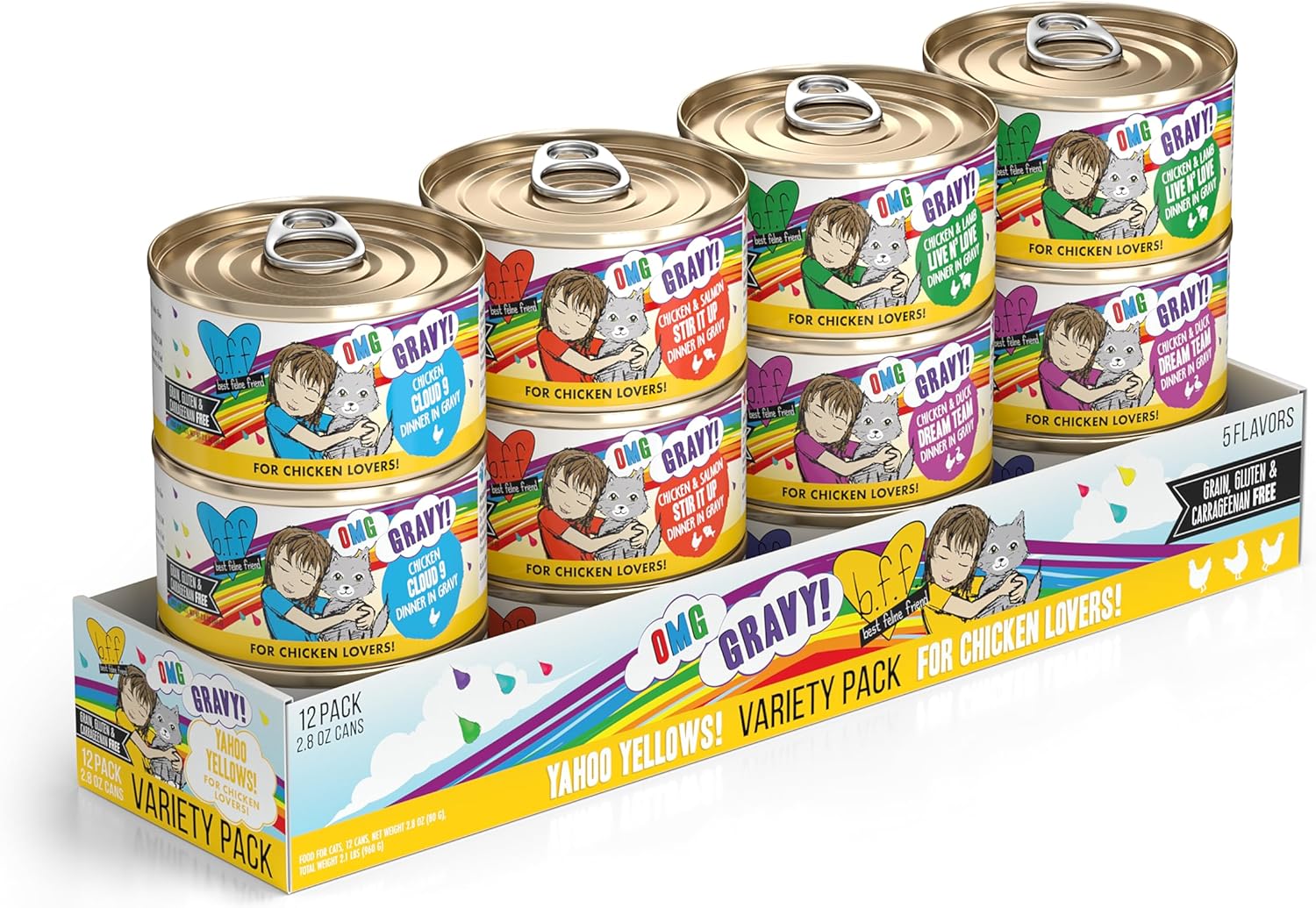 Weruva B.F.F. OMG - Best Feline Friend Oh My Gravy, Yahoo Yellows Variety Pack, 2.8oz Can (Pack of 12)