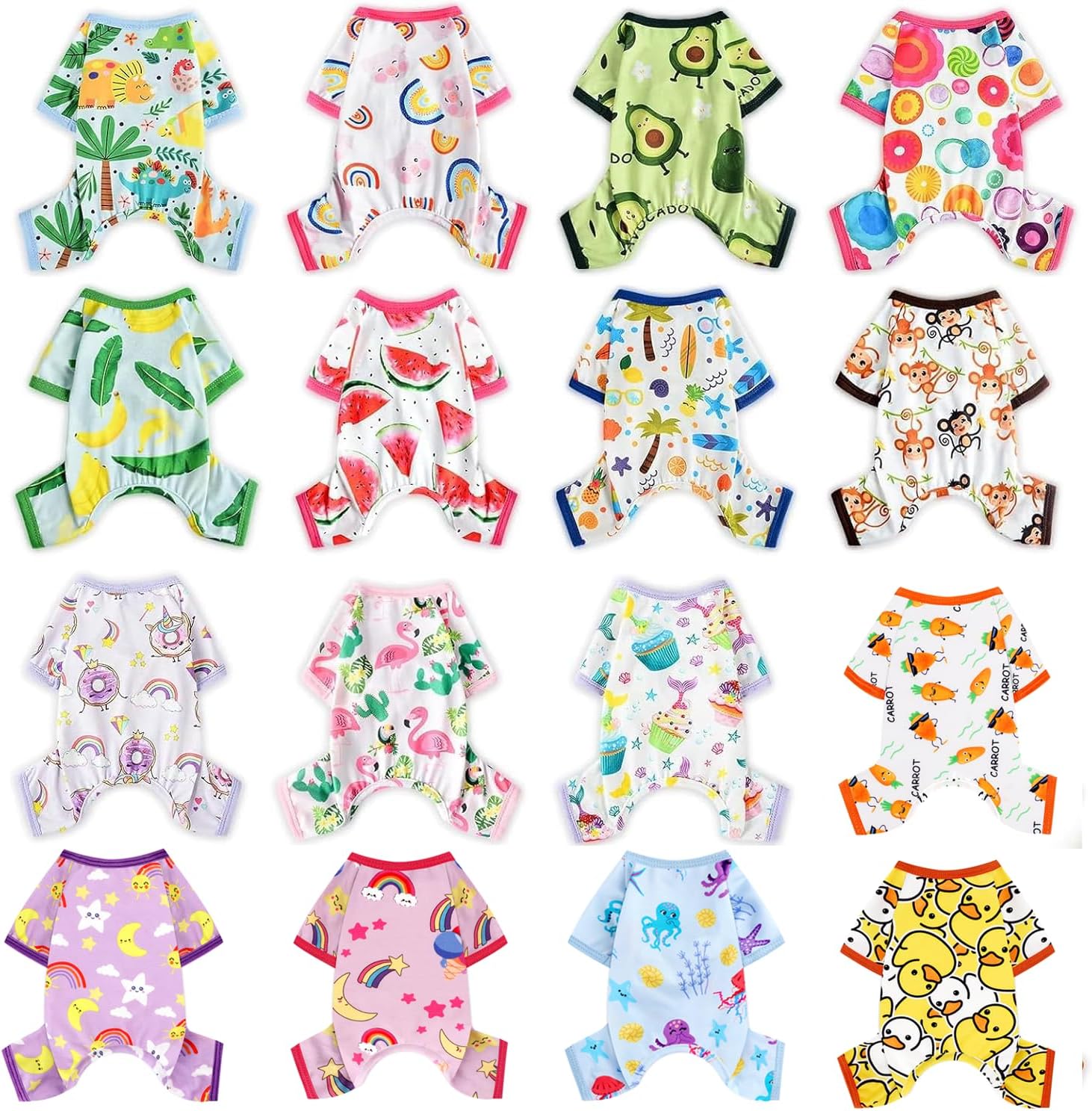• 【PUPPY PAJAMAS DESIGN】Pull-over design for easy on/off,cut higher in the belly for easy potty breaks. Available in different sizes(XS-XXL) to fit most pets, so our dog clothes for small dogs girl, dog clothes for small dogs boy, dog pajamas medium sized dog, dog clothes for medium dogs girl.