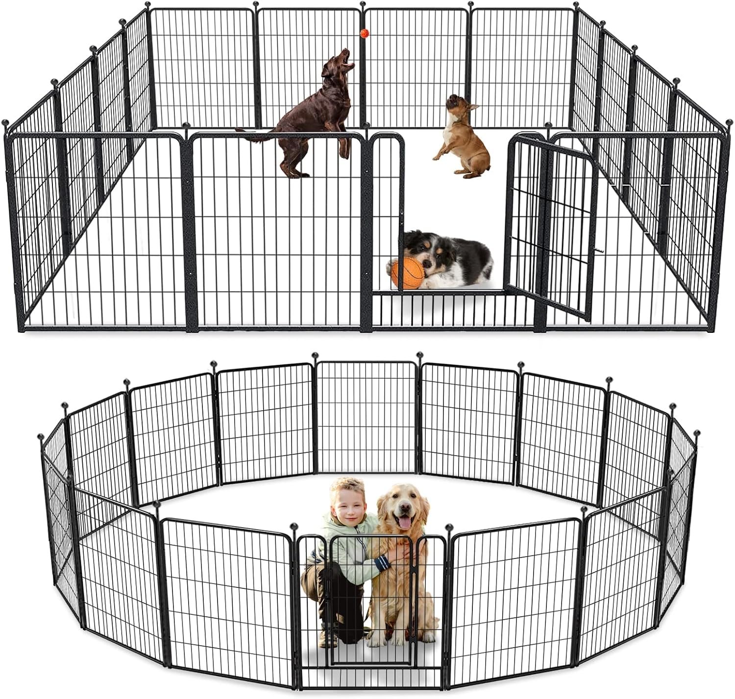 Dog Playpen 32 inch 16 Panels Indoor Outdoor Dog Pen for Medium/Small Dogs Heavy Duty Metal Dog Fence Outdoor for Yard, Puppy Playpen with Door Portable Pet Fence for RV Camping Yard