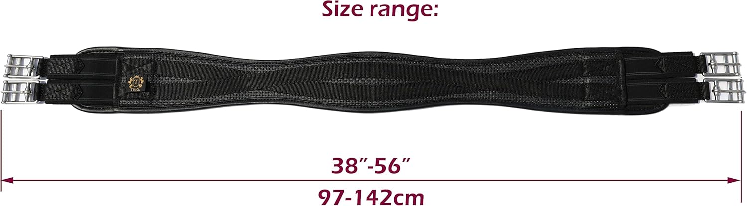 T TEKE Contoured Chafeless Girth for Horses, Airflow Waffle PVC Foam Construction with Double Side Heavy Duty Cotton Elastic and Stainless Steel Buckles (38"-56")