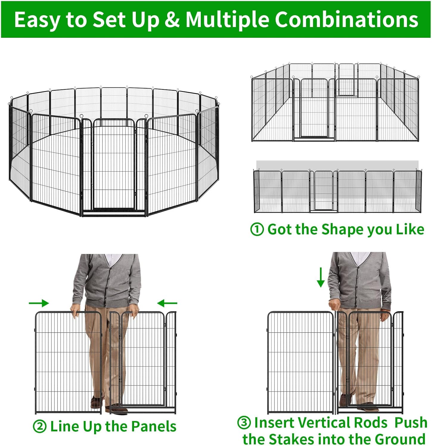 • 【Easy to Set Up & Multiple Combinations】The panels come with individual poles to connect them together, easy to set up or take it down in minutes, dog fence can do multiple combinations and configurations, dog playpen for the yard easily conforms to different shapes according to your garden or room, circle, polygon, irregular, etc