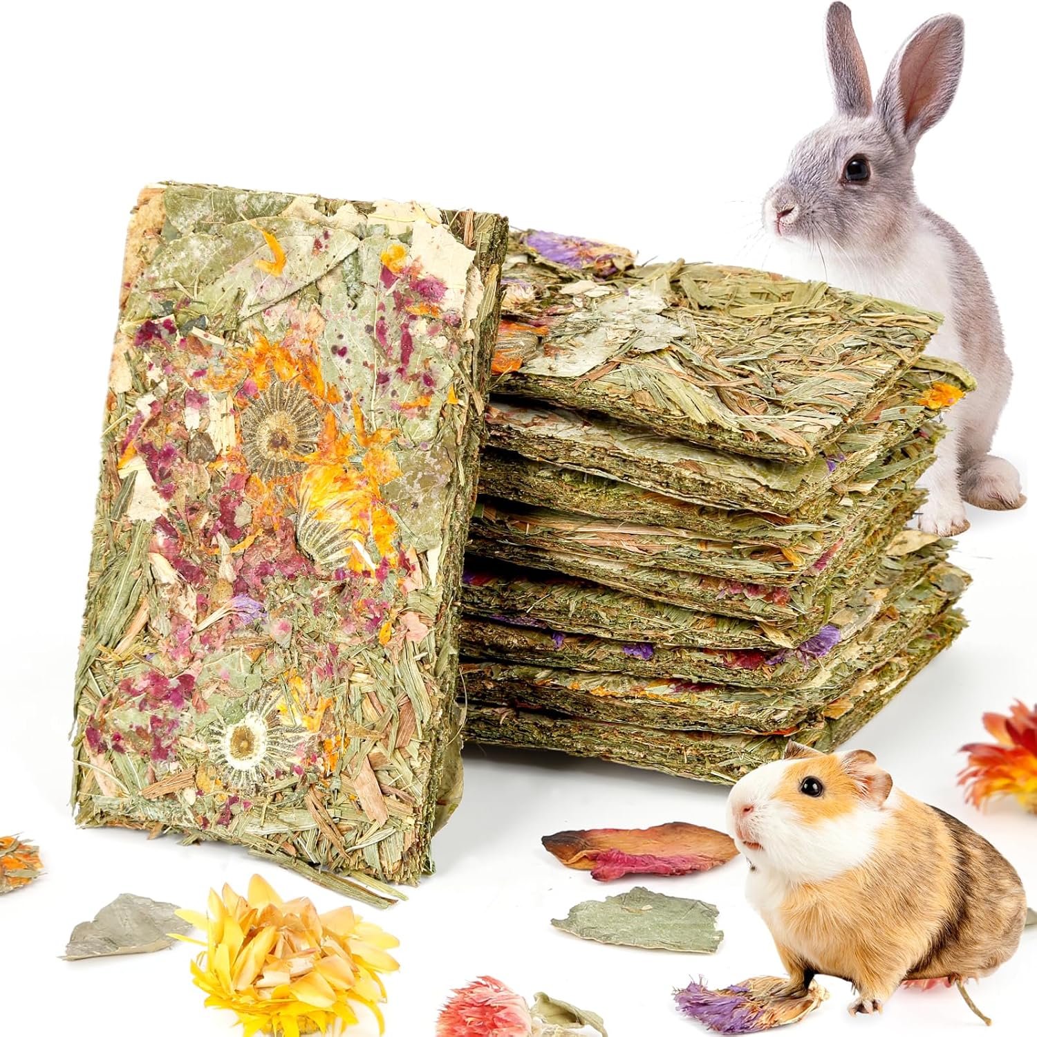 Abizoo Rabbit Natural Treats,10Pcs Timothy Hay Toys Chips Bunny chew Toys with Herbal Flowers Guinea Pig Treats for Hamster Chinchillas Gerbils Rats Small Animals Teeth Care Crisp Snacks
