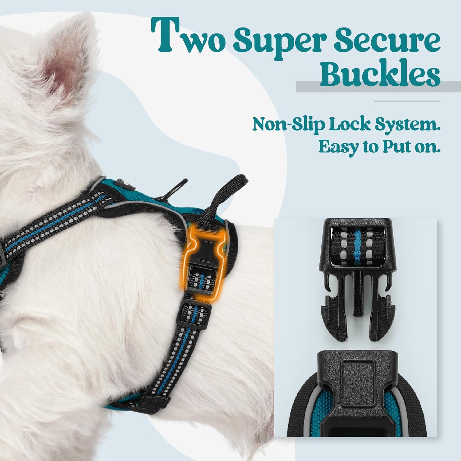 rabbitgoo Dog Harness No Pull with 2 Leash Clips, Adjustable Soft Padded, Reflective Oxford No Choke Pet Vest with Easy Control Handle for Puppy, Blue Coral, XS