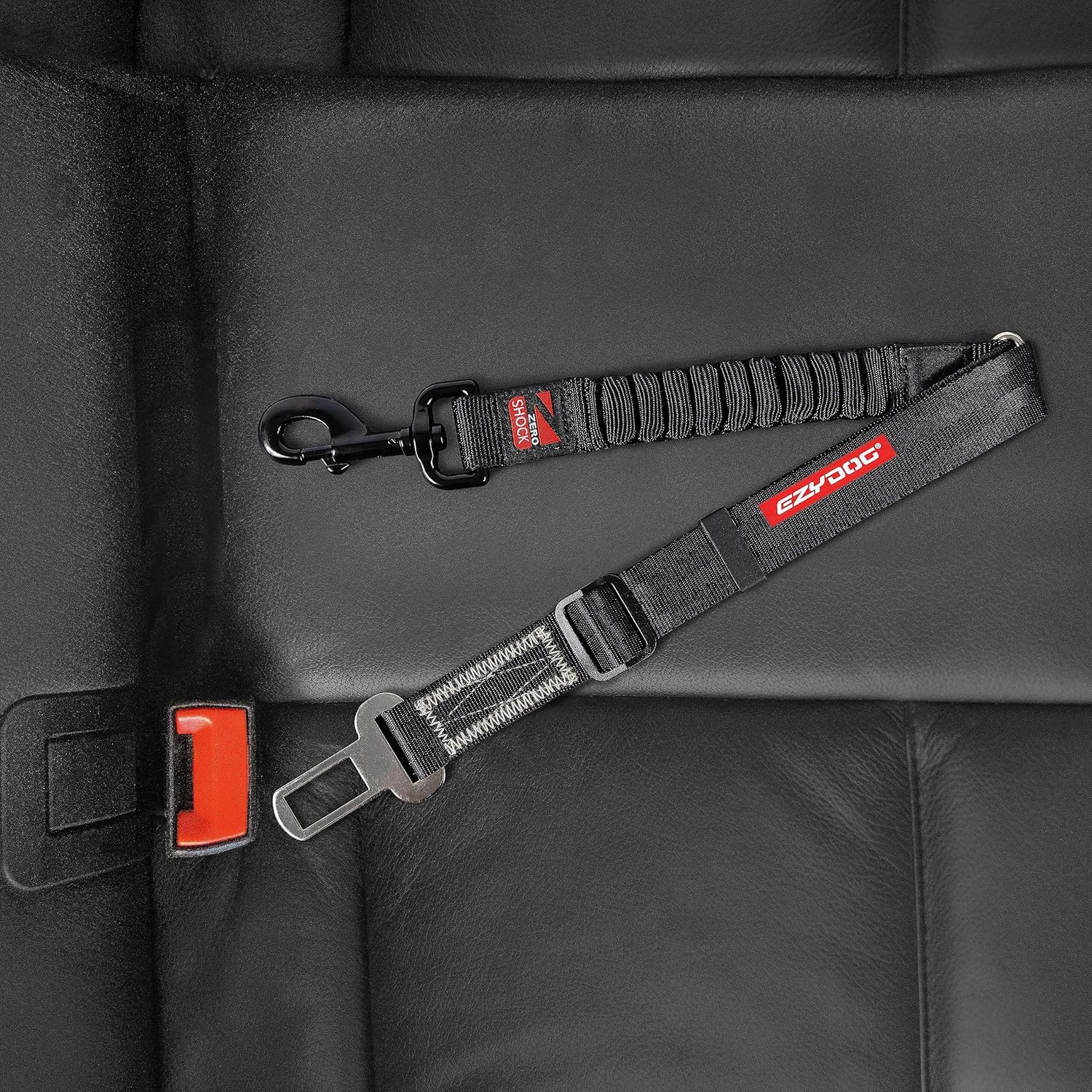 EzyDog Zero Shock Click - Shock Absorbing Dog Seat Belt Car Harness Attachment for Dogs - Adjustable Dog Restraints Seatbelts for Car Travel and Safety - (20in - 26in, Black)