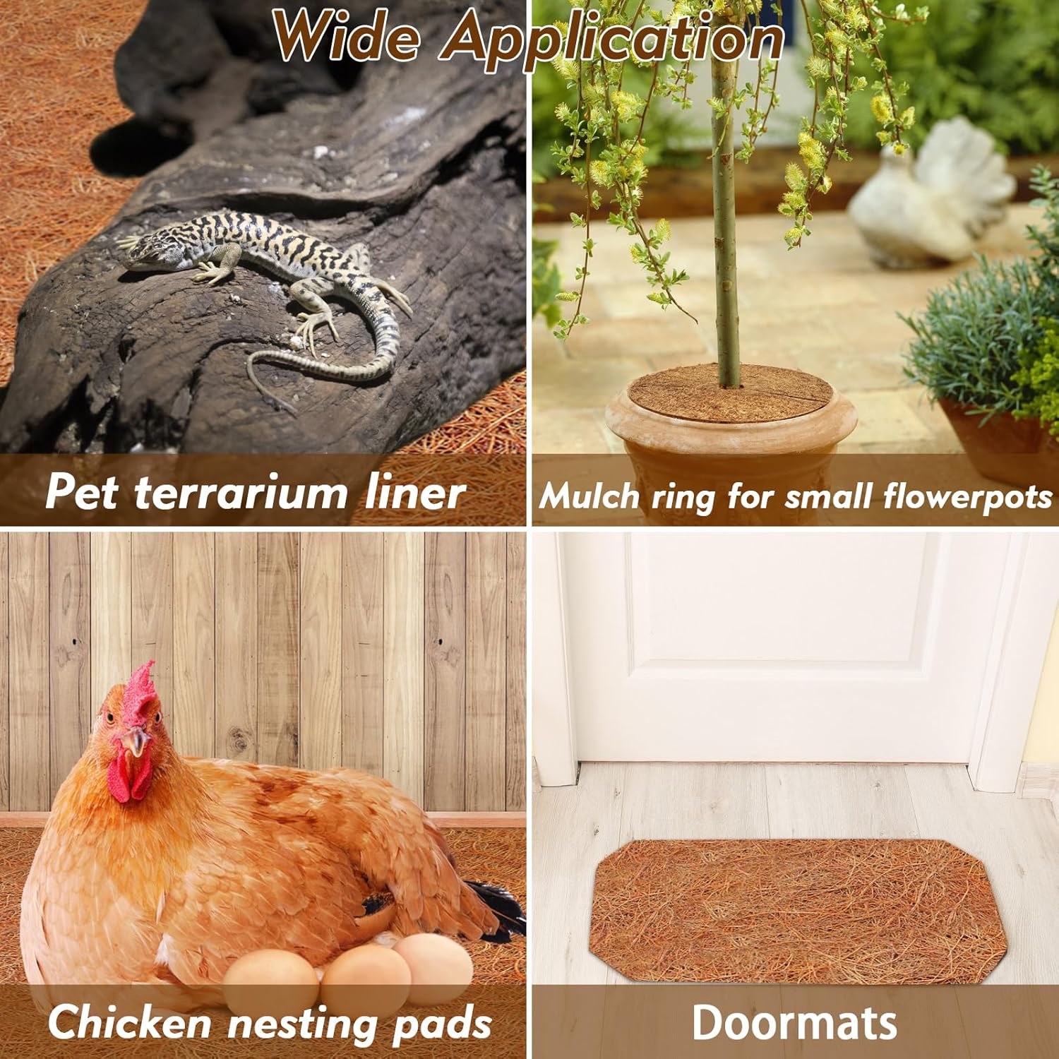 • 🌴【Wide Application】: Reptile terrarium liners can be used for many kinds of reptiles, like turtles, snakes, lizards, chameleon, bearded dragon, Iguana, insects etc. As to the coco mat is square, so you can cut it into round coco mulch disc rings for protect or decorate small flowerpots. It is also a good choice for chicken nesting box liners