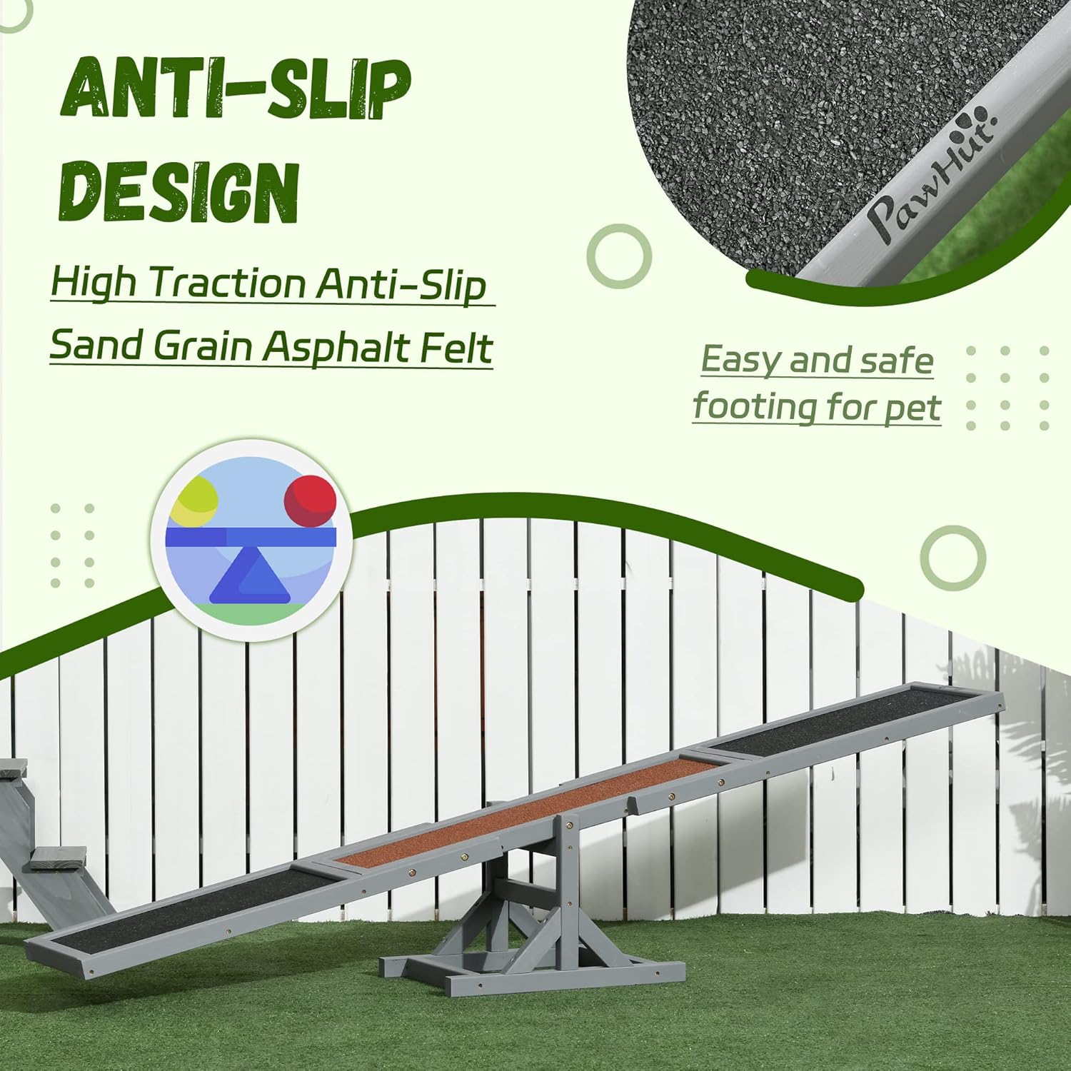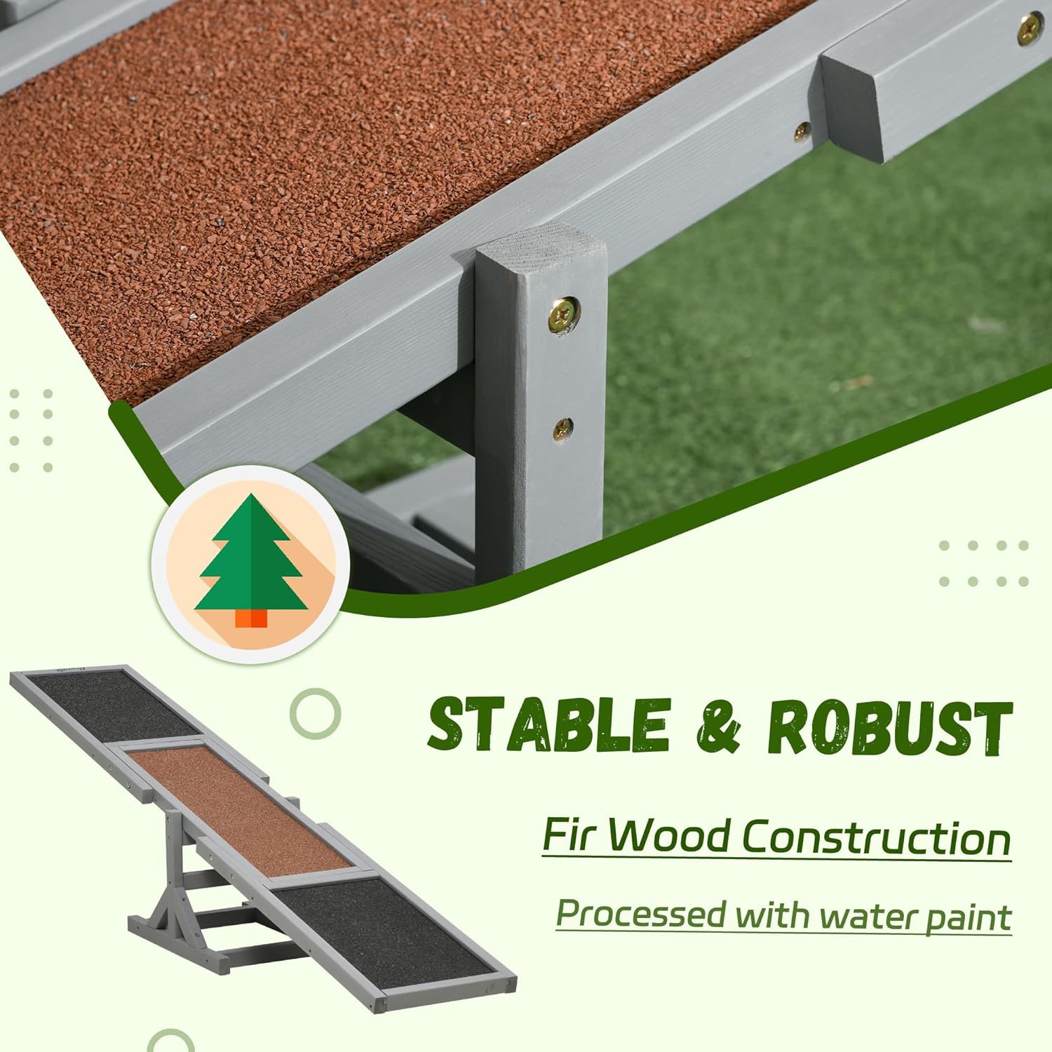 PawHut Wooden Dog Agility Seesaw for Training and Exercise, Platform Equipment Run Game Toy, Weather Resistant Pet Supplies, 71" L x 12" W x 12" H, Gray