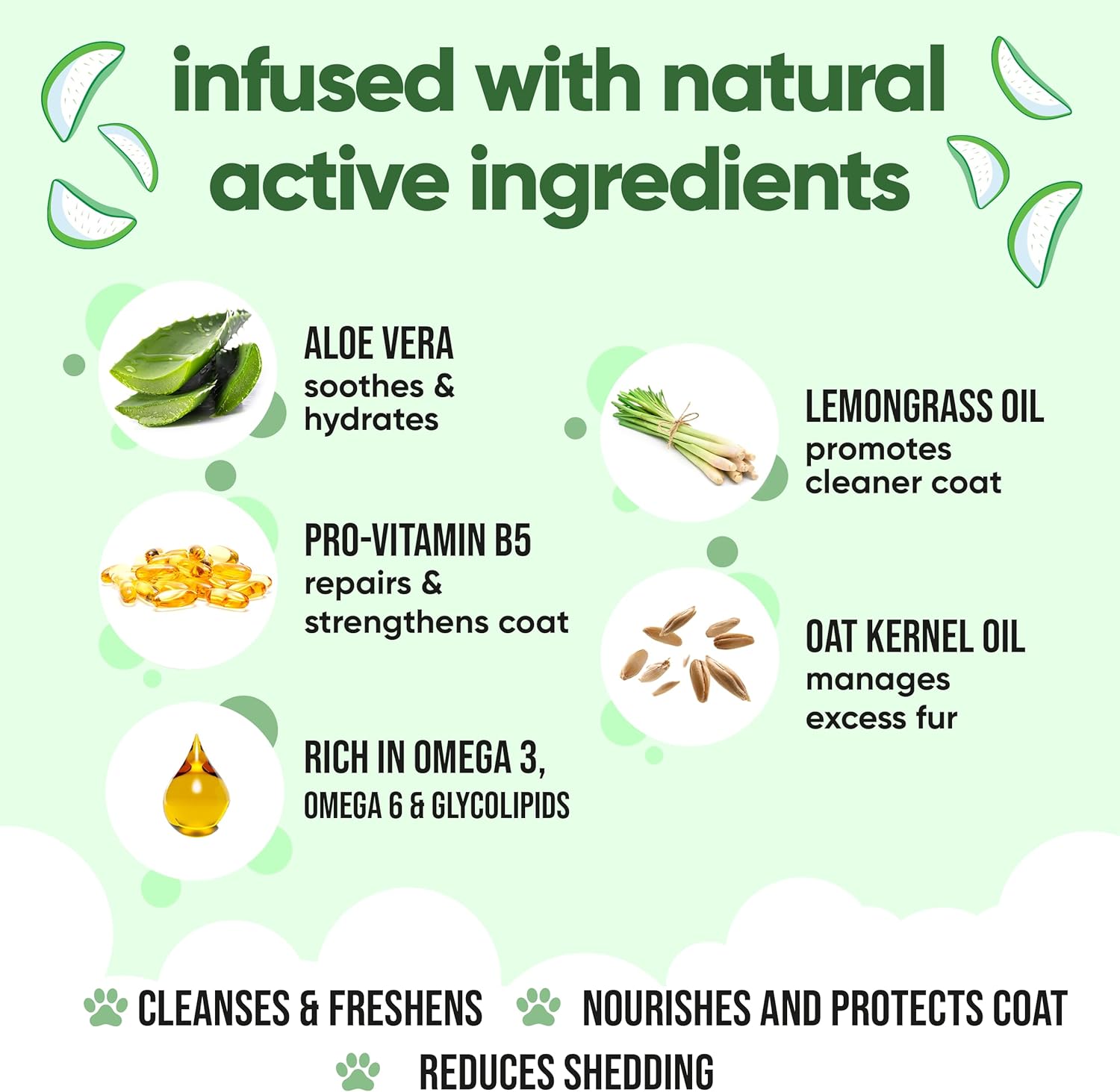• Product Benefits : Helps minimize shedding, promotes healthy skin, and nourishes the coat with a blend of omega 3 & 6, glycolipids, aloe vera, lemongrass, and pro-vitamin B5. Helps minimize shedding, promotes healthy skin, and nourishes the coat with a blend of omega 3 & 6, glycoโ€ฆ See more