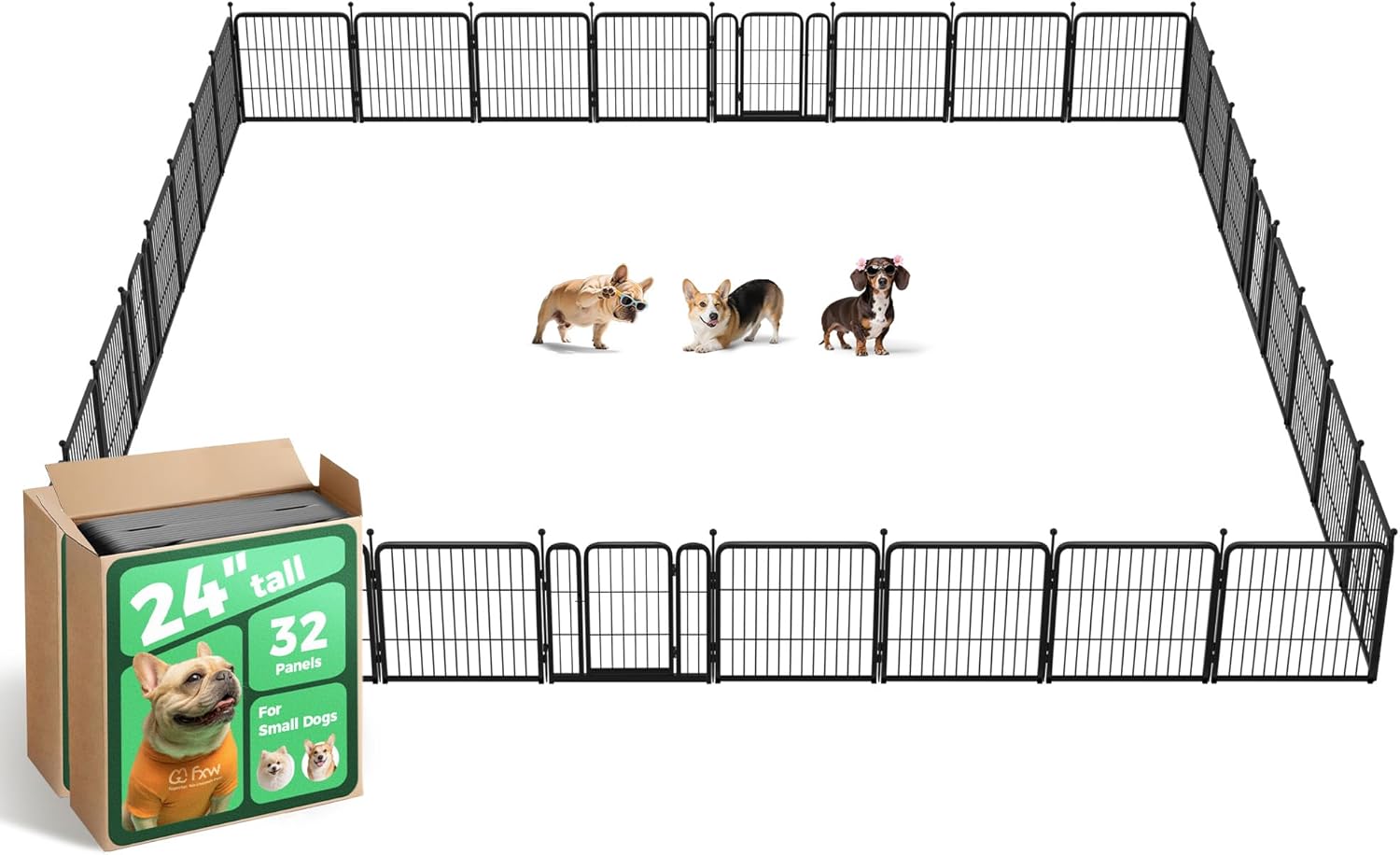 FXW Rollick Unleashed Dog Playpen for Indoor, Yard, RV Camping, 24 inch 32 Panels for Small and Puppy Dogs, Black│Patented