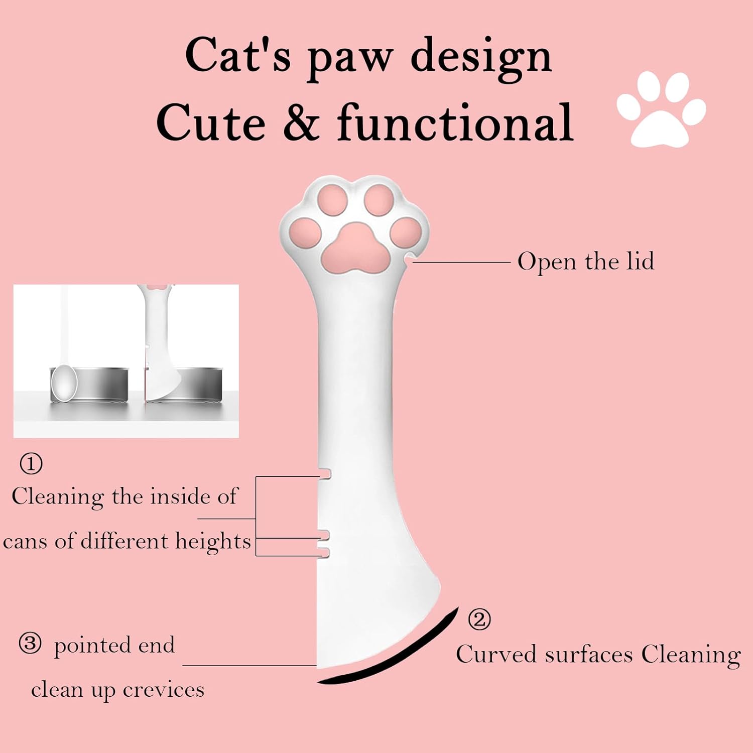 3 Pcs Pet Food Can Lids & One Can Spoon | Cute Paw Shape Opener Spatula Cat Wet Food Spoon | Universal BPA Free Silicone Can Spoon & Covers for Dog Cat Cans(Pink)