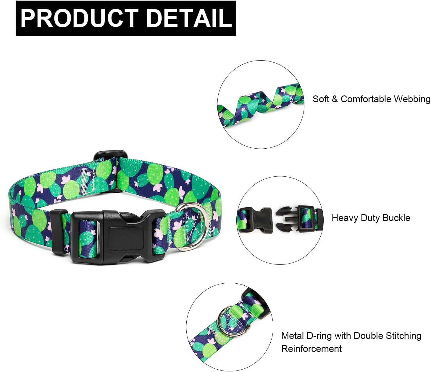 Mercano Adjustable Dog Collar - Special Design Patterns, Soft Nylon Comfortable Sturdy Pet Collar for Small Medium Large Dogs (S, Cactus)