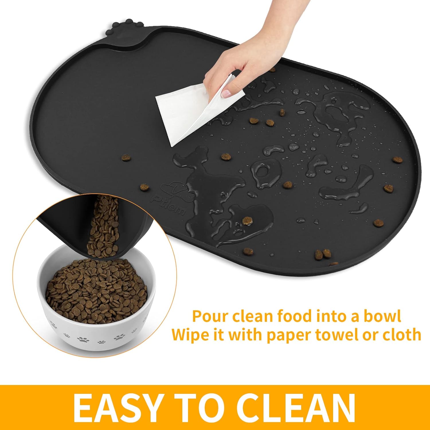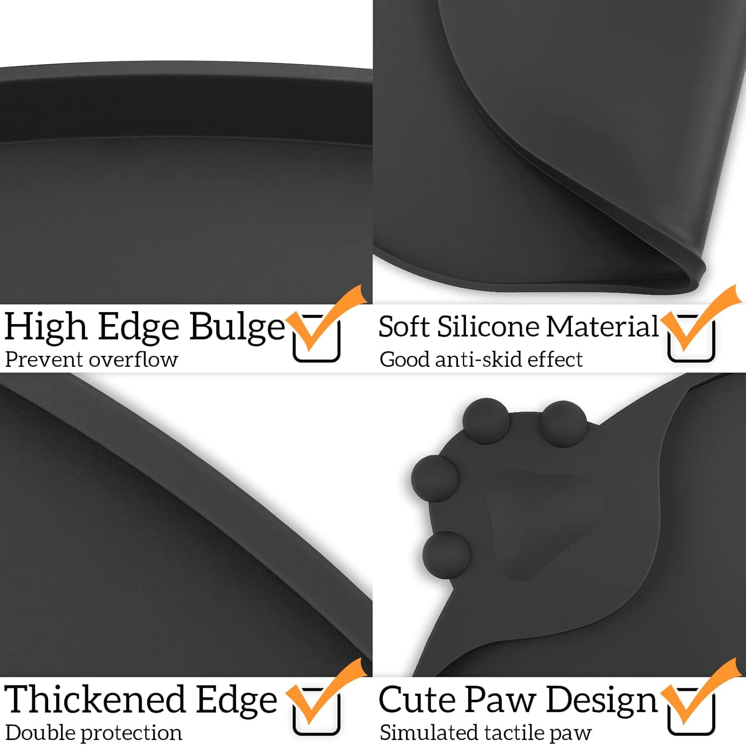 • 100% Waterproof and Anti-Slip: Our dog bowl mat with high-lip edges. Leak-proof pet placemats can prevent food and water overflow, and protect the floor. Prevent pets from eating contaminated food. Non-slip silicone mat keeps the bowl in place.