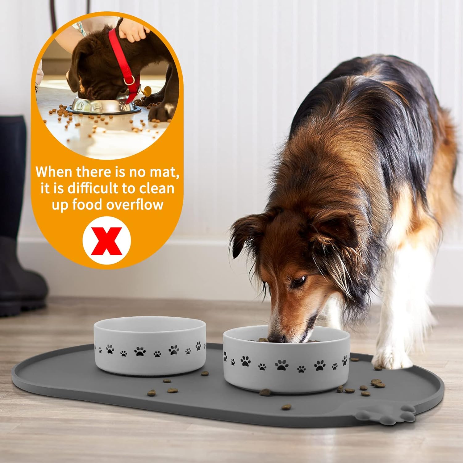 • Product Information: Each pack contains 1 Grey silicone dog food mat - 24" x 16". Please pay attention to whether the dog placemat size can be suitable for your pet's bowls and dishes. Ensure feeding and watering needs.