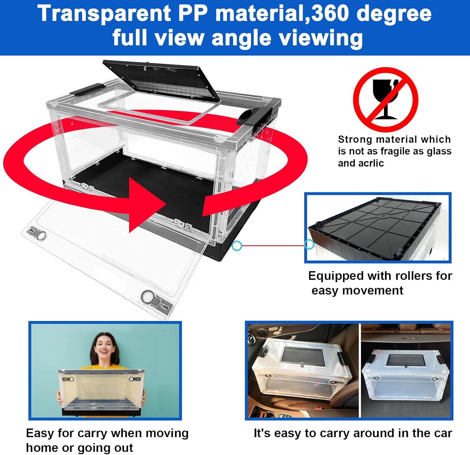 • 【360 degree fll angle viewing】Our pet hamster reptile cage is made of semi transparent PP material, and the pet's state inside the cage can be observed from various angles