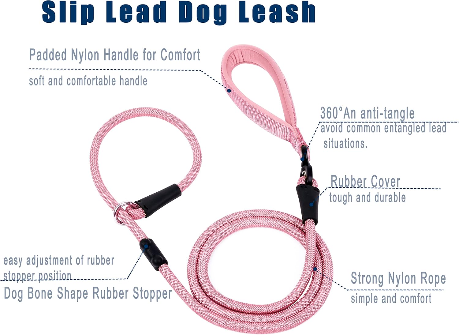 • 2 in 1 Dog Leash : 1/2" x 6 feet, Our dog slip lead is a leash and collar in one convenient design, you can adjust slipknot to fit any neck size,It’s very simple and easy to use.