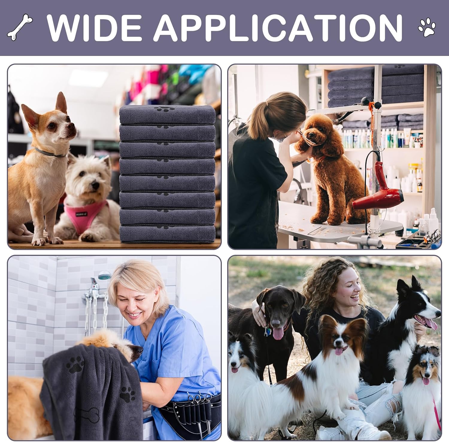 • Wide Range of Applications: these paw print pet grooming drying towels are suitable for dogs, they are also suitable for cats or other pets, small animals; Microfiber dog towels can be applied in home, pet hospital, pet bath center and other places, or donate these dogs towels to animal charities to help animals in need
