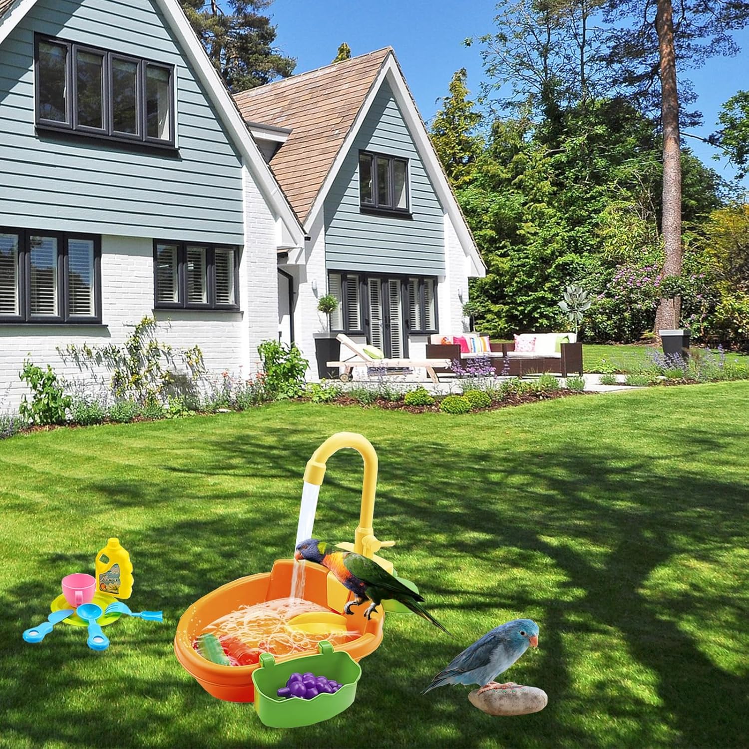 • 【 Pets and Children's Toys 】: The bird bath bathtub adopts an automatic faucet design and requires the installation of 2 AA batteries (not included), making it very easy to assemble and convenient to use. The sink can store various toys and small items, whether it's for children to play or for parrots/birds to take a bath.