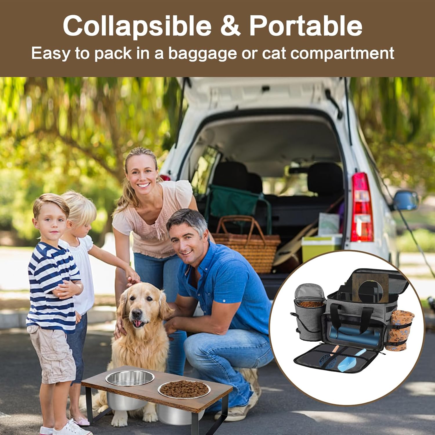 • EASY TO USE & CLEAN :2 Food grade stainless steel dog bowls are rust-proof and removable. dishwasher and microwave safe. Natural Odor-Free Wood dog bowl stand is smooth surface and waterproof