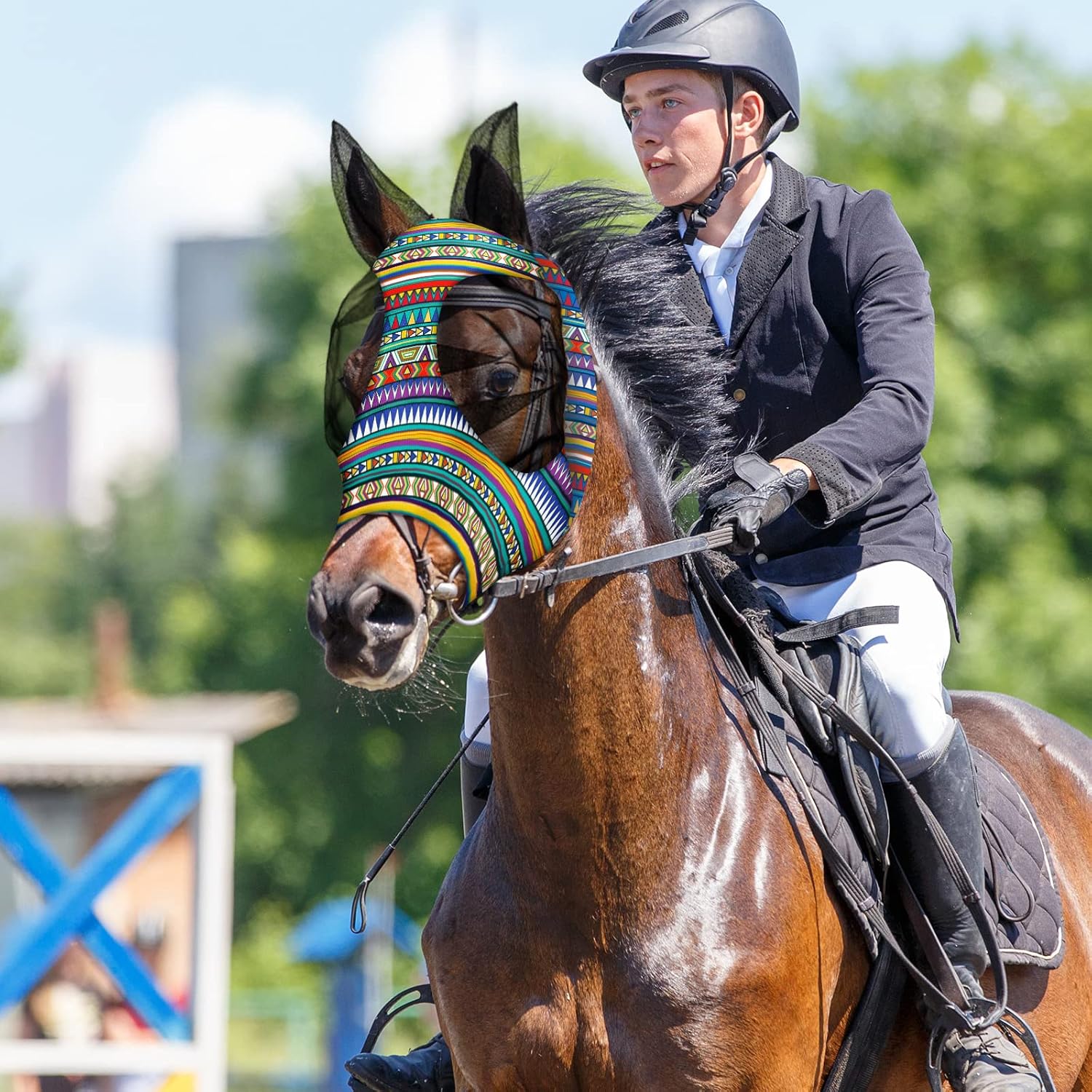 • Stylish and Functional: these geometric patterns mask for horses are with 12 different patterns, each of them is stylish and cool will make your horses stand out; Which is suitable for a variety of activities, including trail rides, pasture grazing, and horse shows
