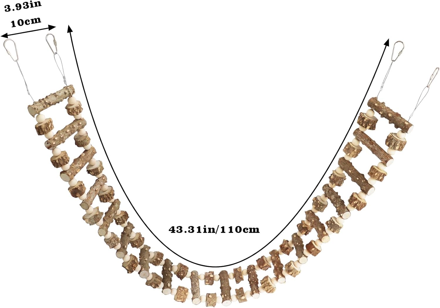 • Easy to Install: The length of this bird ladder toy is about 43.31"/110 cm, and the weight is about 1.5 lb/0.7 Kg. There are two metal buckles at each end, which can be easily and safely installed anywhere. Our small animal bending bridge is not only suitable for all kinds of small animal cage accessories but also suitable for hanging in the garden woods for birds, squirrels, and other small animals to play and stand.