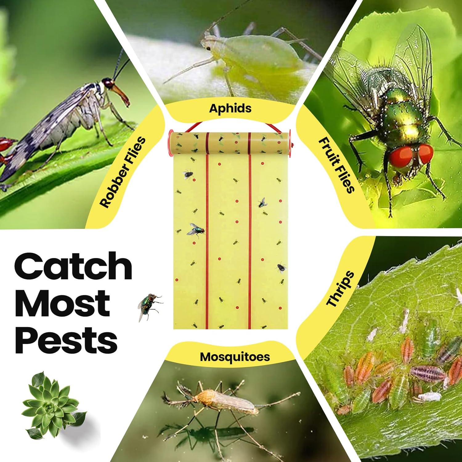 • Total Coverage: the sticky traps for gnats are suitable for different place, such as house, kitchen, yard, farm, horse stable, fruit stand, pantry and any place where annoying flies hover around; The fly paper can stick flies, fruit flies, gnats, aphids, moth, wasp, white flies, black flies, spider, midges, mosquitoes and so on