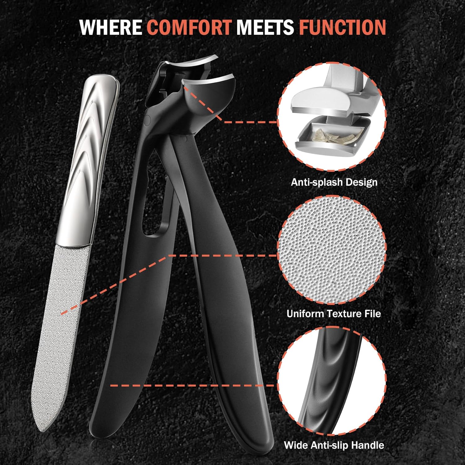 - ๐ฅLESS BENDING, MORE COMFORT - We understand the importance of comfort and convenience, especially for elderly individuals. Our ergonomic toenail clipper for seniors fits comfortably in your hand, ensuring a secure grip and reducing strain on your wrist. With this thick nail clipper's innovative angled head bionics design, you no longer need to contort your body just to cut your toenails.