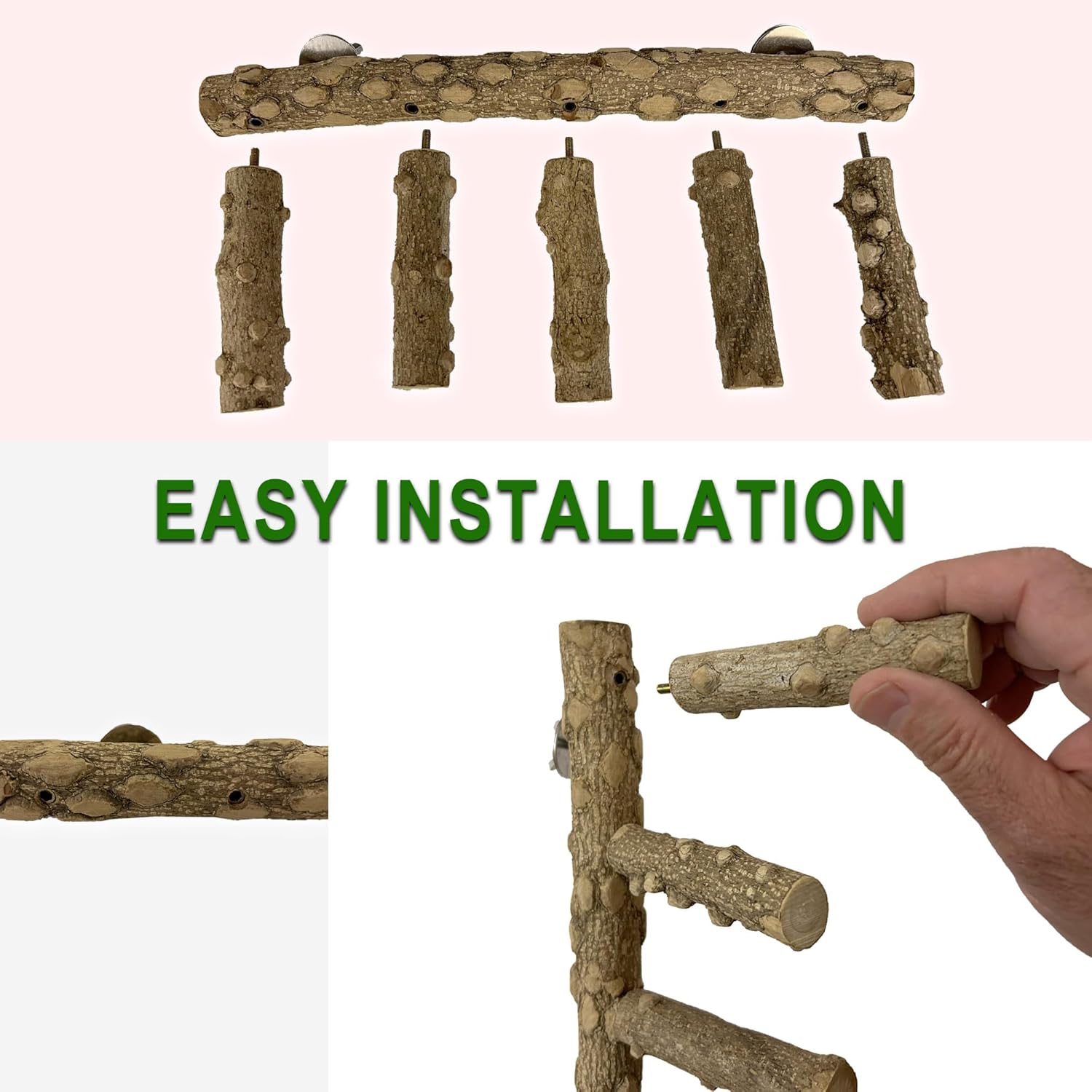 • ORIGINAL DESIGN: Our bird perch may be installed inside or outside of cage with metal screws and nuts that come with the ladder. It is an excellent accessory for bird cages.