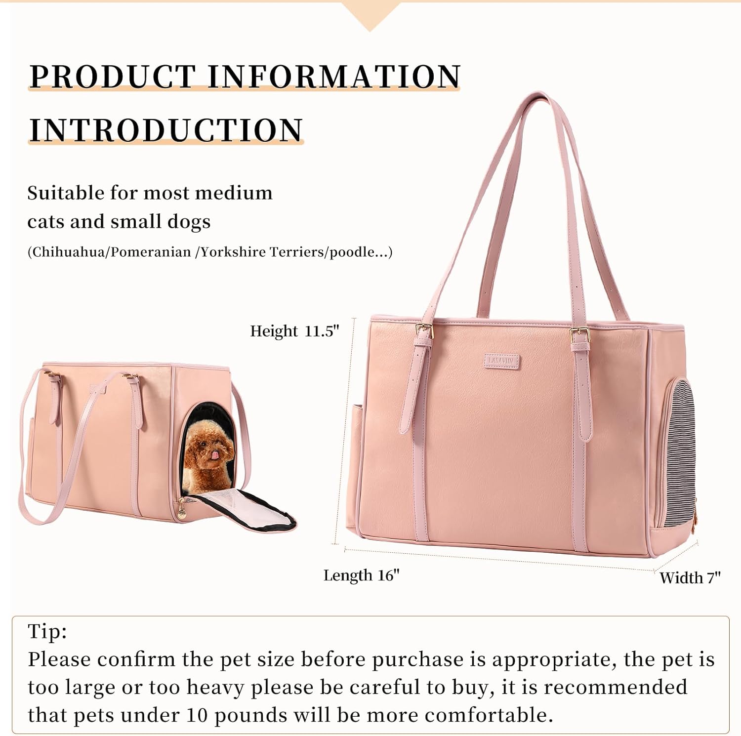• [Specification]Length 16 inches, width 7 inches, height 11.5 inches. Tip: Please make sure your small dog/cat/rabbit is the right size before purchasing, please be careful if your pet is too big or too heavy, it is recommended that pets under 10 pounds will be more comfortable.