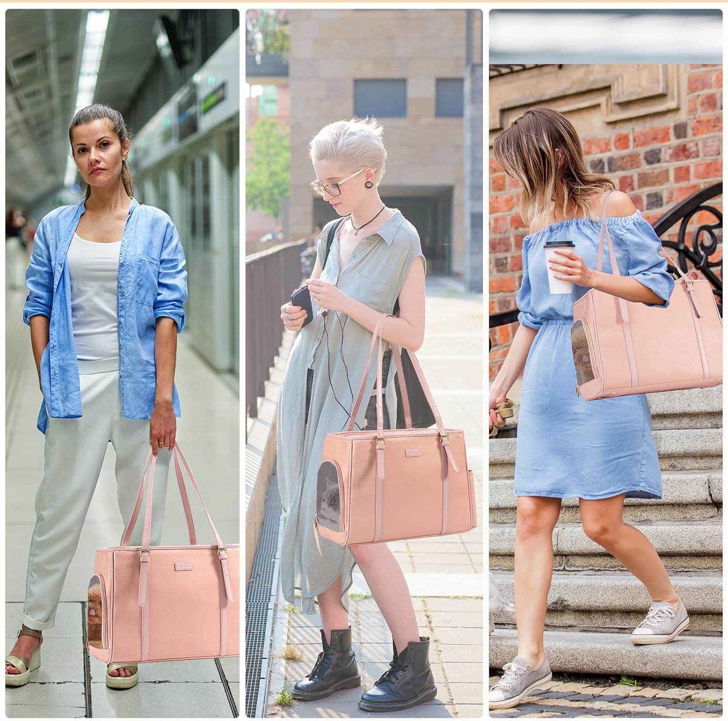 • 【Convenient for Travel】Thanks to this stylish pet carrier bag, whether it's shopping, traveling by car, traveling by plane or going to the pet hospital, it provides a comfortable and spacious travel experience for your pet.