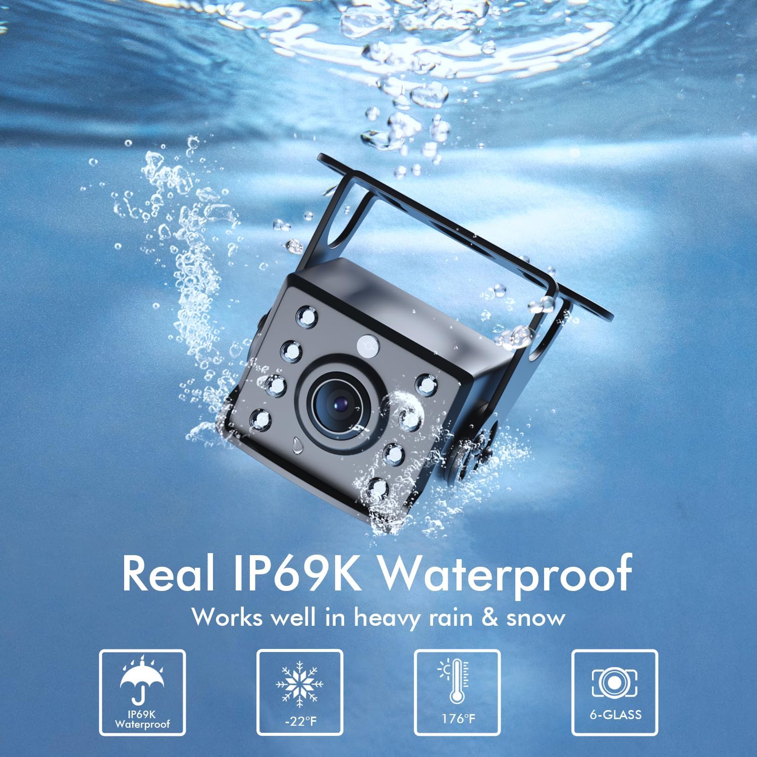 • 【Multi-function Truck Backup Camera】Image flip is perfect for reversing, no need to turn around all the time. Customize your viewing experience with adjustable brightness, contrast, and saturation settings. IP69 waterproof standard makes it to work in bad weather, resistant to heat and cold weather.