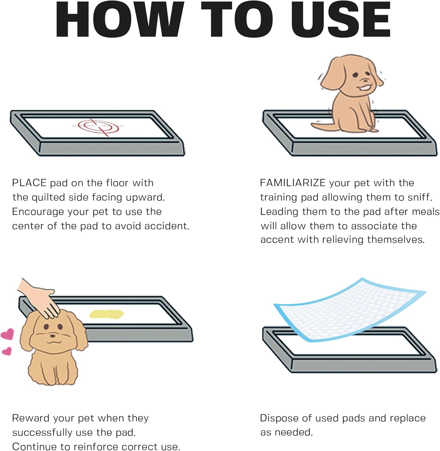 • INSTINCTIVE USE FOR FASTER RESULTS: Each dog pee pads extra large includes a built-in attractant that guides your pup to the right spot - great puppy pee pads learning or reinforcing potty habits.