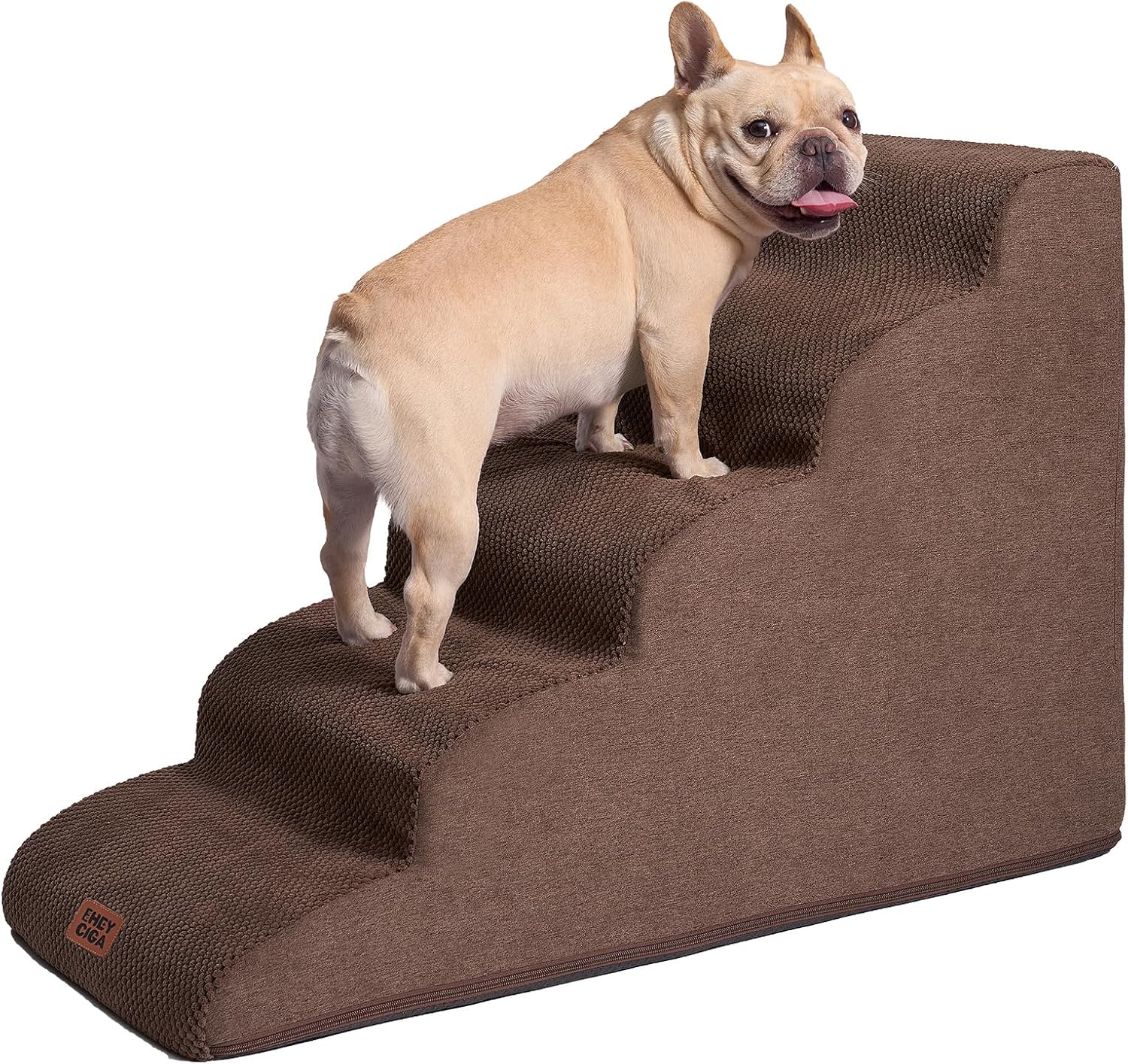 • MULTIPLE STEP SIZES - This dog stair has 2 steps, 3 steps, 4 steps and 5 steps to choose. Our 2-step stairs fits for chair/sofa/bed up to 13inch. 3-step stairs fits for chair/sofa/bed up to 17inch. 4-step stairs fits for chair/sofa/bed up to 21inch. And 5-step stairs fits for chair/sofa/bed up to 24inch.