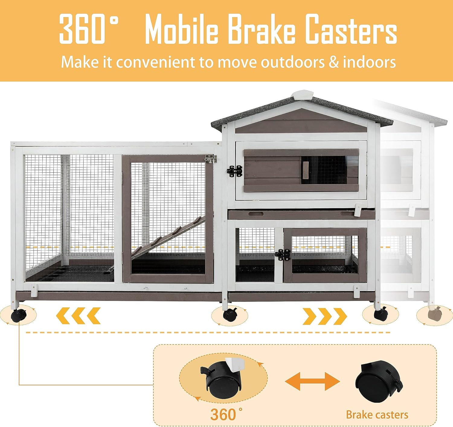 • 🐰【Humanity Design】The 3 removable trays make the guinea pig condo easier to clean which will not leak. The bunny hutch have 6 wheels which are convinient to move. You can easily to retrieve your pets from the cage as the top of the activity area is openable,which is also sinple for you to feed them.
