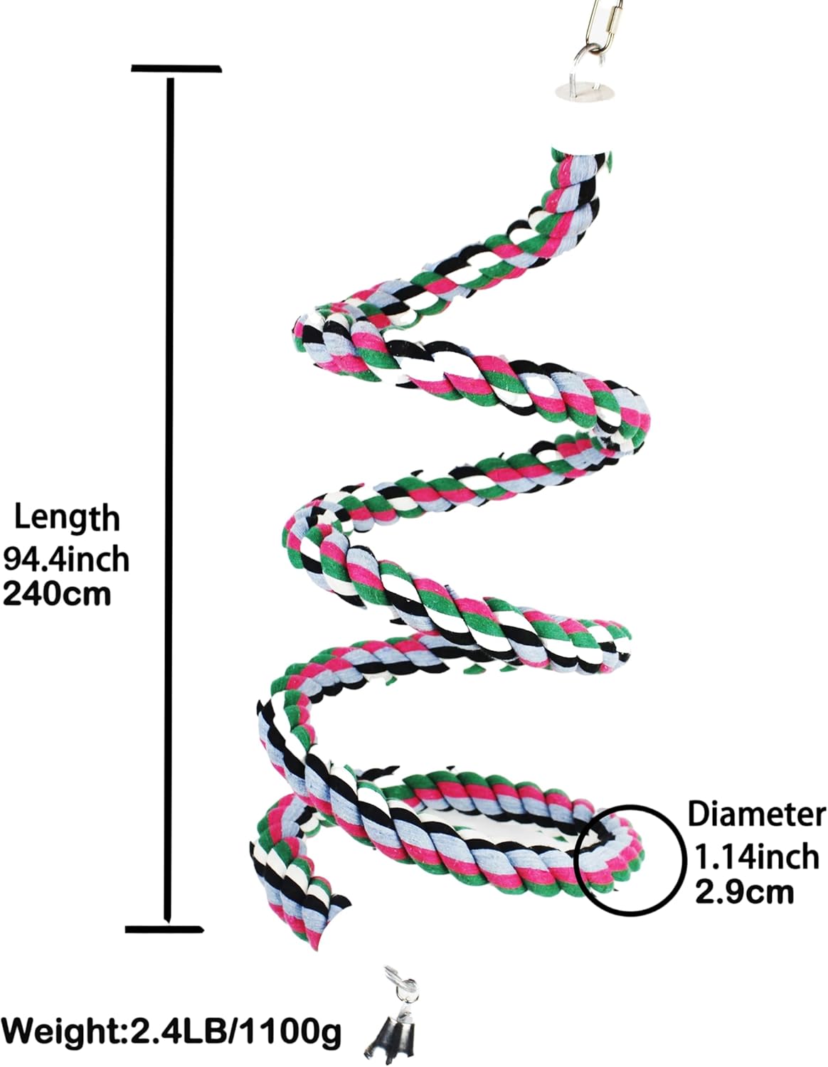 • ๐Ÿฆ[WHAT YOU GET] 1pc 94.4inch length soft cotton spiral rope with metal bell,fully closed/open hook can hang in birdcage or outside safety,bendable internal steel wire can re-sharp it provide more fun for your pets