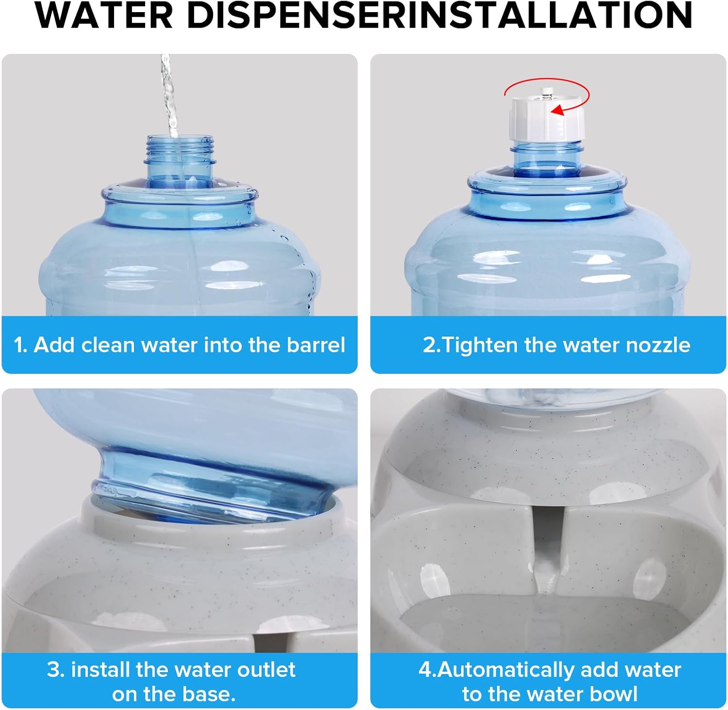 • Dog Water Dispenser Easy To Use:To use this automatic pet waterer, you simply fill the bucket with water and snap it onto the base. The water will automatically refill the bowl. The base has four non-slip pads so you can place the water dispenser anywhere without worrying about your pet moving it around