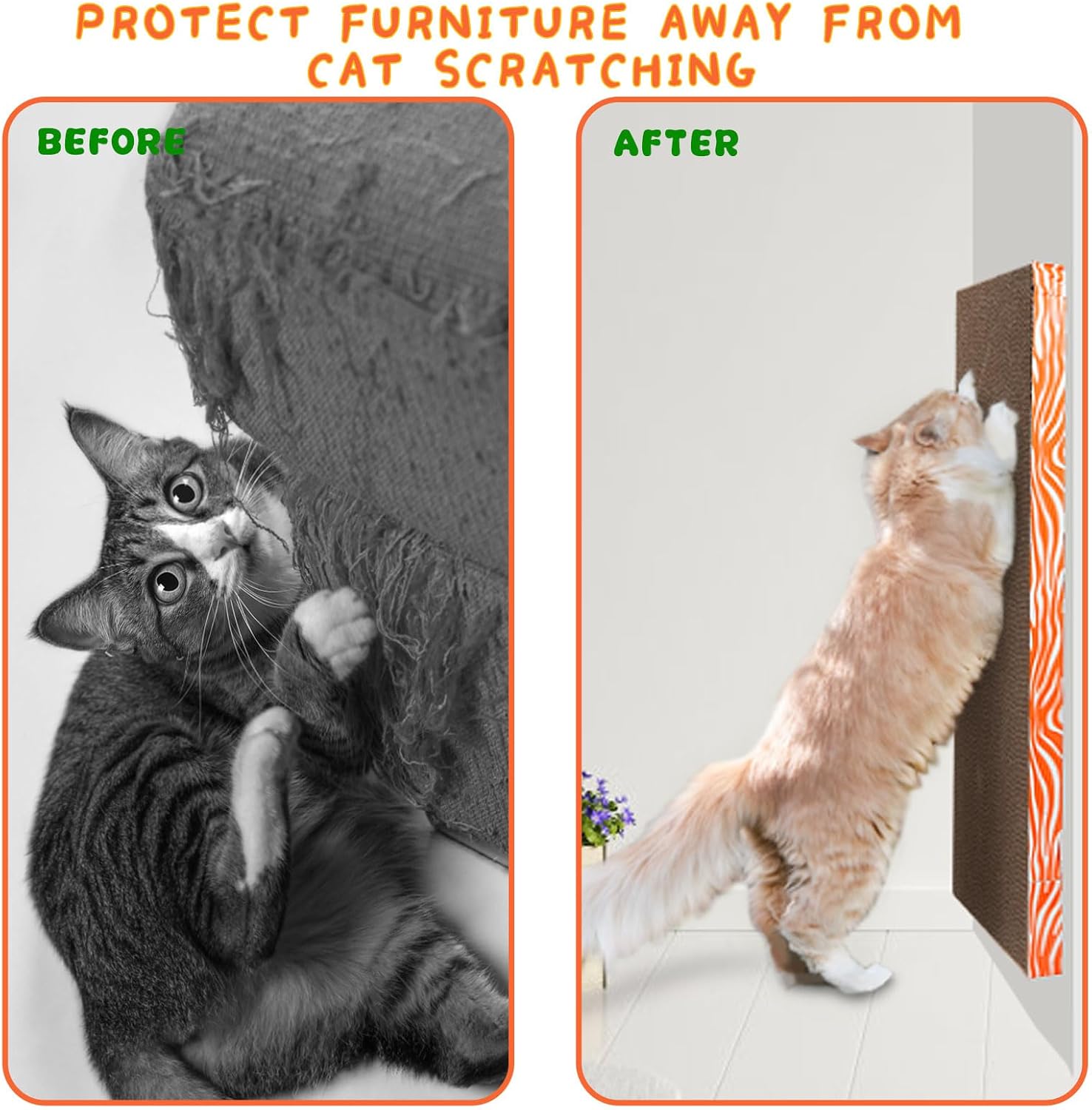 • 😻【Avoiding Damage to Furniture】 Scattering a little of catnip on the scratch pad for cat guiding kitty to practice grinding on the cardboard, avoiding damage to furniture. Furniture protector from cat scratching.