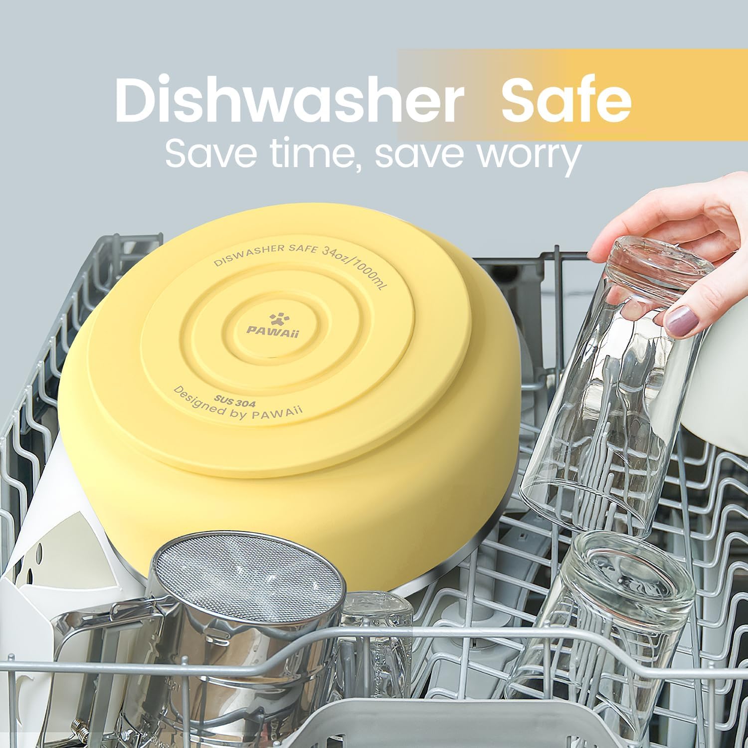 • ๐€ ๐›๐ซ๐ž๐ž๐ณ๐ž ๐ญ๐จ ๐œ๐ฅ๐ž๐š๐ง: You can wash this dog feeder in a dishwasher or manually. Pawaii stainless steel dog bowl repels oil, does not hide dirt, and can be cleaned by simple flushing.