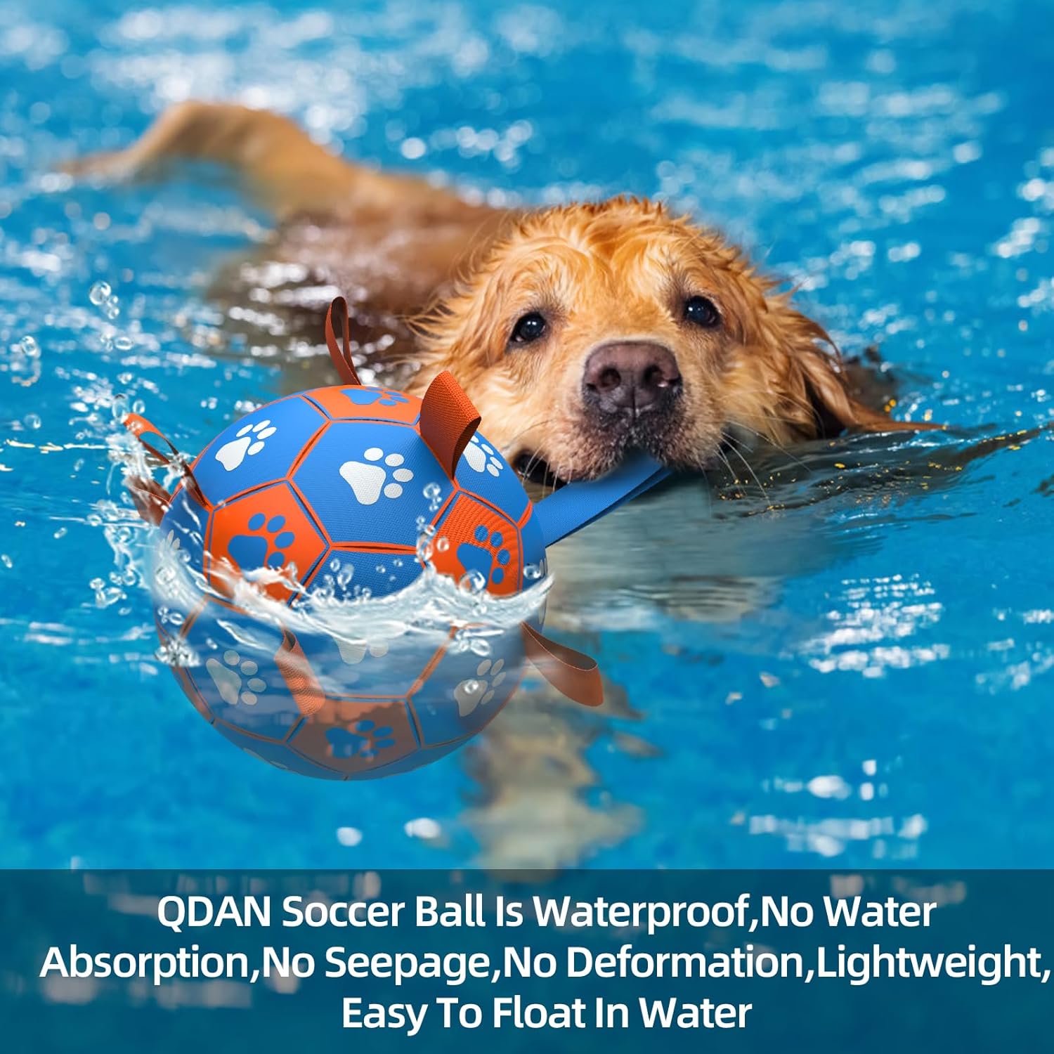 • QDAN Dog Soccer Ball Best Git For Your Dog - Send your dog a bithday gift. House and Outdoor Dog Toyscan be played in the llving room,pool.lake and beach,because it ls also Water Toys Bal,no water absorption.noseepage,no deformation,lightweight,easy to float in water. Dog Soccer Ball with Grab straps are great for dog catching