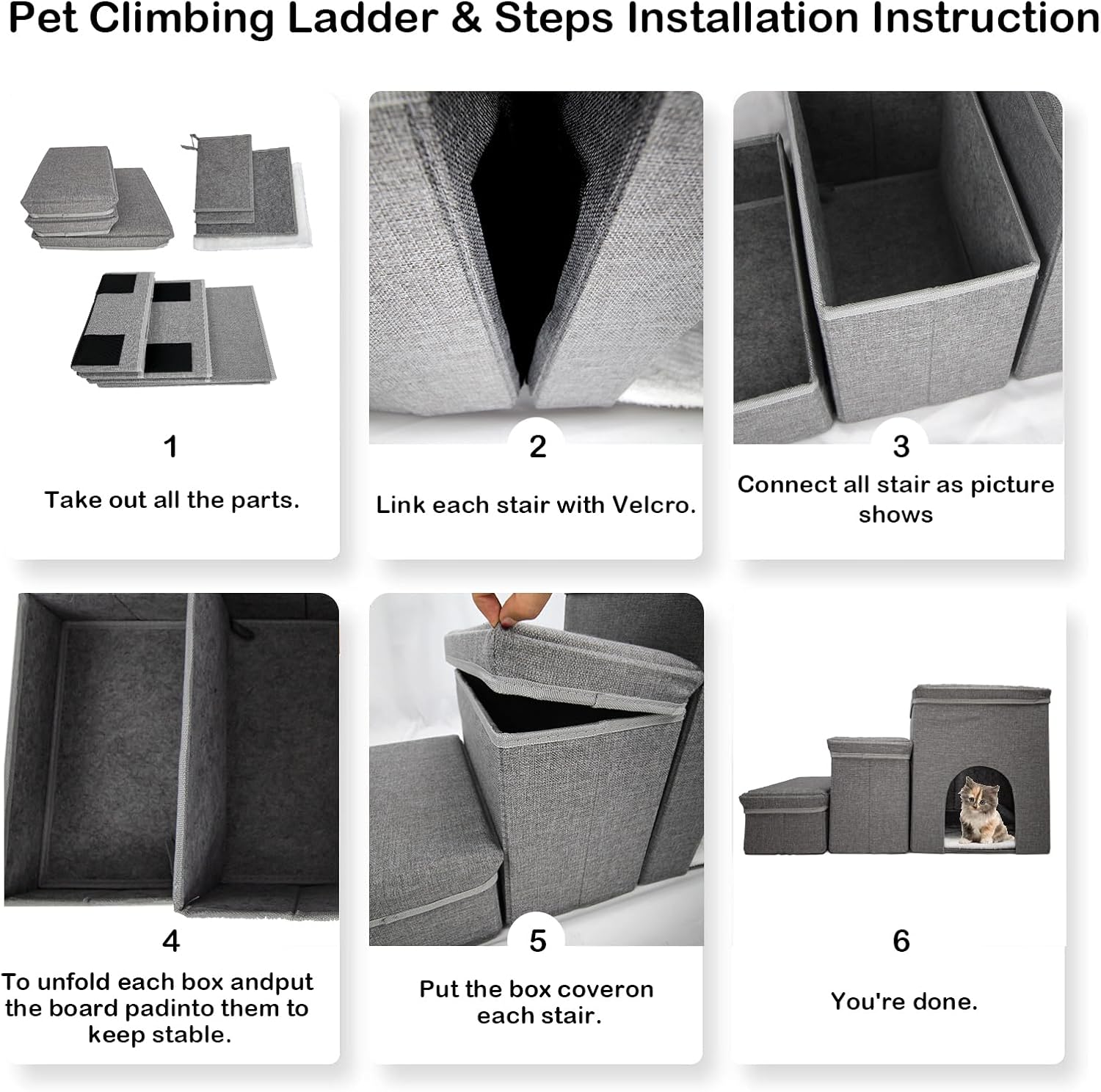 • Easy to Assemble: it only takes you a couple of minutes to assemble these dog stairs – take out all subjects, expand the stairs and put in plates, then the lids which make up the top of the stairs get put on.
