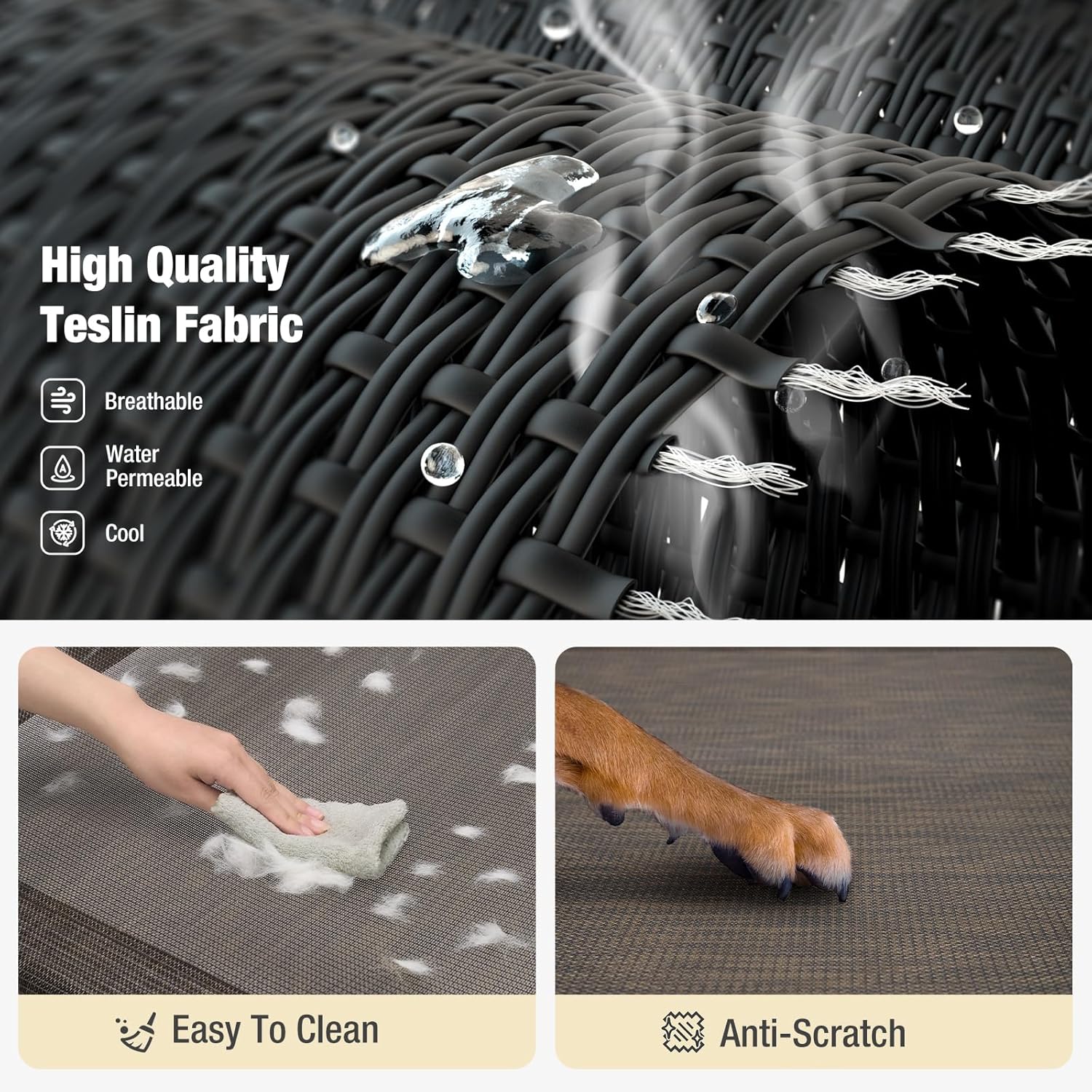 • All-Season Comfort: The Teslin Mesh mat not only allows the air to flow, but also allows the water to penetrate, keeping your pet cool in summer; The elevated dog bed lifts your dog 8.2 inches off the hard ground, mud or wet grass, alleviating joints pressure and keeping health